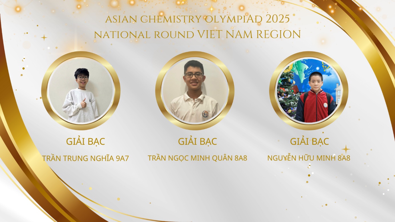 Trường THCS Phan Chu Trinh tự hào thông báo: học sinh của nhà trường đã tham gia Kỳ thi Olympic Hóa học Châu Á (Asian Chemistry Olympiad – AChO) năm 2025 vòng Quốc gia và đạt được những thành tích vô cùng xuất sắc, khẳng định trí tuệ, bản lĩnh và năng lực hội nhập quốc tế của học sinh nhà trường.