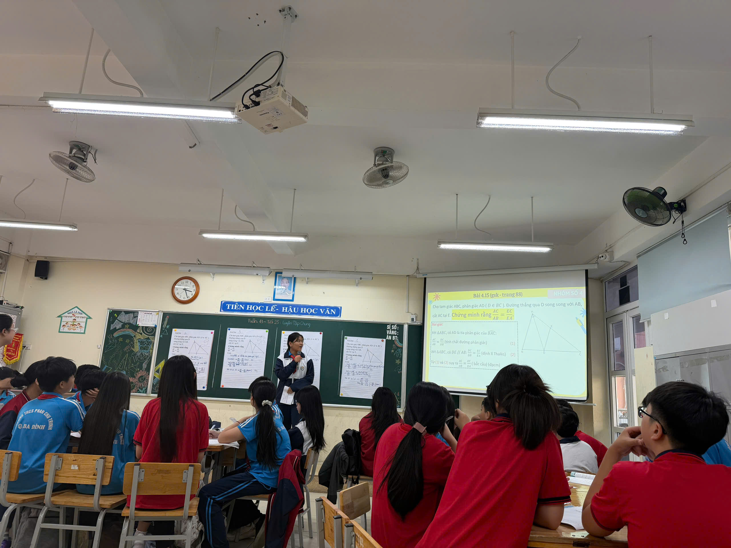 Trong hội thi Giáo viên dạy giỏi cấp trường năm học 2025–2026, cô Trương Thúy Vy, giáo viên Toán của trường, đã mang đến tiết dạy minh họa thuộc chủ đề: “Luyện tập chung – Định lí Thalès, Đường trung bình của tam giác và Tính chất đường phân giác của tam giác”. Đây là tiết học được đánh giá cao bởi sự đầu tư công phu, ứng dụng công nghệ thông tin hiệu quả cùng phương pháp dạy học phát huy tối đa năng lực của học sinh.