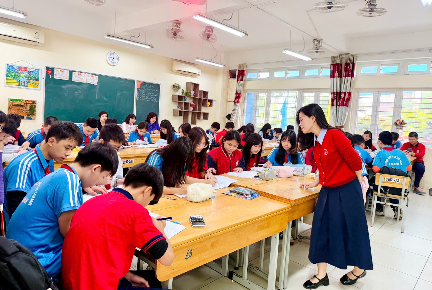 Điểm nổi bật của tiết học là tinh thần hợp tác và sự tập trung của tập thể lớp 8A2. Các em mạnh dạn tham gia vào hoạt động nhóm, trao đổi ý kiến, trình bày quan điểm trước lớp và lắng nghe bạn bè phản biện. Bầu không khí tương tác ấy không chỉ giúp các em hiểu bài sâu hơn mà còn rèn luyện những kĩ năng mềm quan trọng như giao tiếp, làm việc nhóm và thuyết trình. Bên cạnh đó, thái độ học tập nghiêm túc của cả lớp được thể hiện qua việc các em chủ động chuẩn bị bài, thực hiện yêu cầu của giáo viên đúng thời gian và giữ trật tự suốt buổi học. Nhờ vậy, tiết học không chỉ đạt mục tiêu luyện tập kiến thức mà còn góp phần bồi dưỡng sự tự tin, tinh thần trách nhiệm và ý thức tự học của mỗi học sinh. Đây cũng là tiền đề quan trọng giúp các em phát triển toàn diện hơn trong những giờ học tiếp theo.