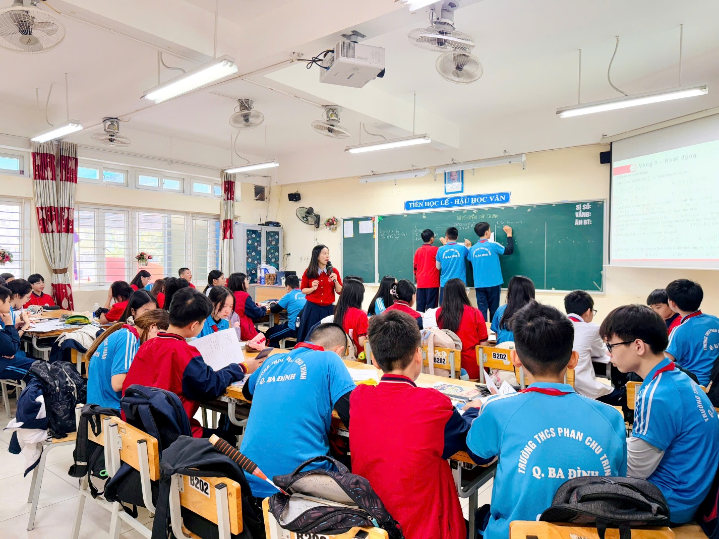 Hoạt động ôn luyện vốn quen thuộc được cô giáo triển khai theo định hướng phát huy vai trò chủ động của học sinh: các em tham gia giải bài tập, trình bày và đối chiếu kết quả ngay trong giờ. Không khí học tập diễn ra sôi nổi nhưng vẫn đảm bảo tính nghiêm túc. Cô Phượng giữ vai trò dẫn dắt, kết nối và hỗ trợ kịp thời, giúp học sinh củng cố kiến thức và rèn luyện tư duy logic một cách tự nhiên, hiệu quả. Thay vì chỉ nghe giảng, các em được trực tiếp tham gia vào quá trình tiếp nhận tri thức, từ đó hình thành thói quen tự tìm tòi và giải quyết vấn đề. Mỗi khi học sinh gặp khó khăn, cô nhẹ nhàng gợi mở để các em tự phát hiện sai sót và điều chỉnh cách làm. Chính nhờ phương pháp giảng dạy linh hoạt này mà giờ học trở nên gần gũi, thân thiện và tạo được động lực cho học sinh.