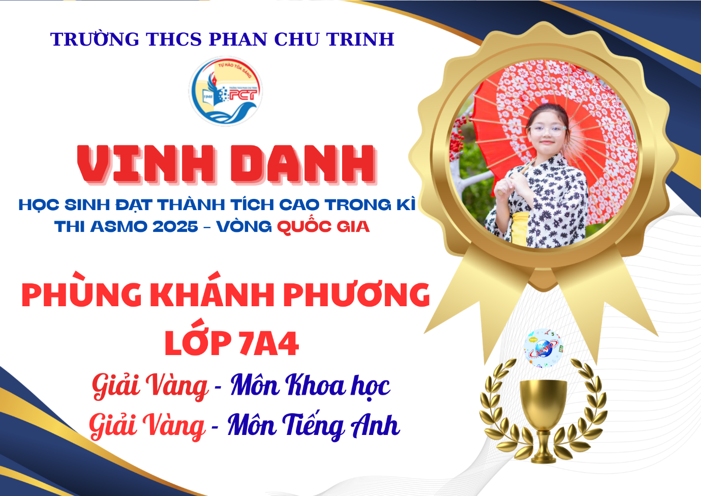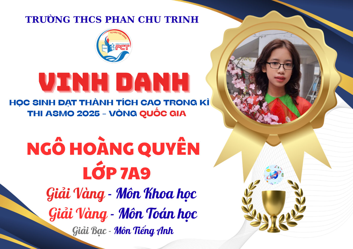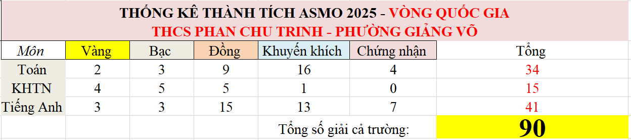 Dưới đây là thống kê kết quả đạt được của học sinh THCS Phan Chu Trinh tại Vòng Quốc gia ASMO 2025:
