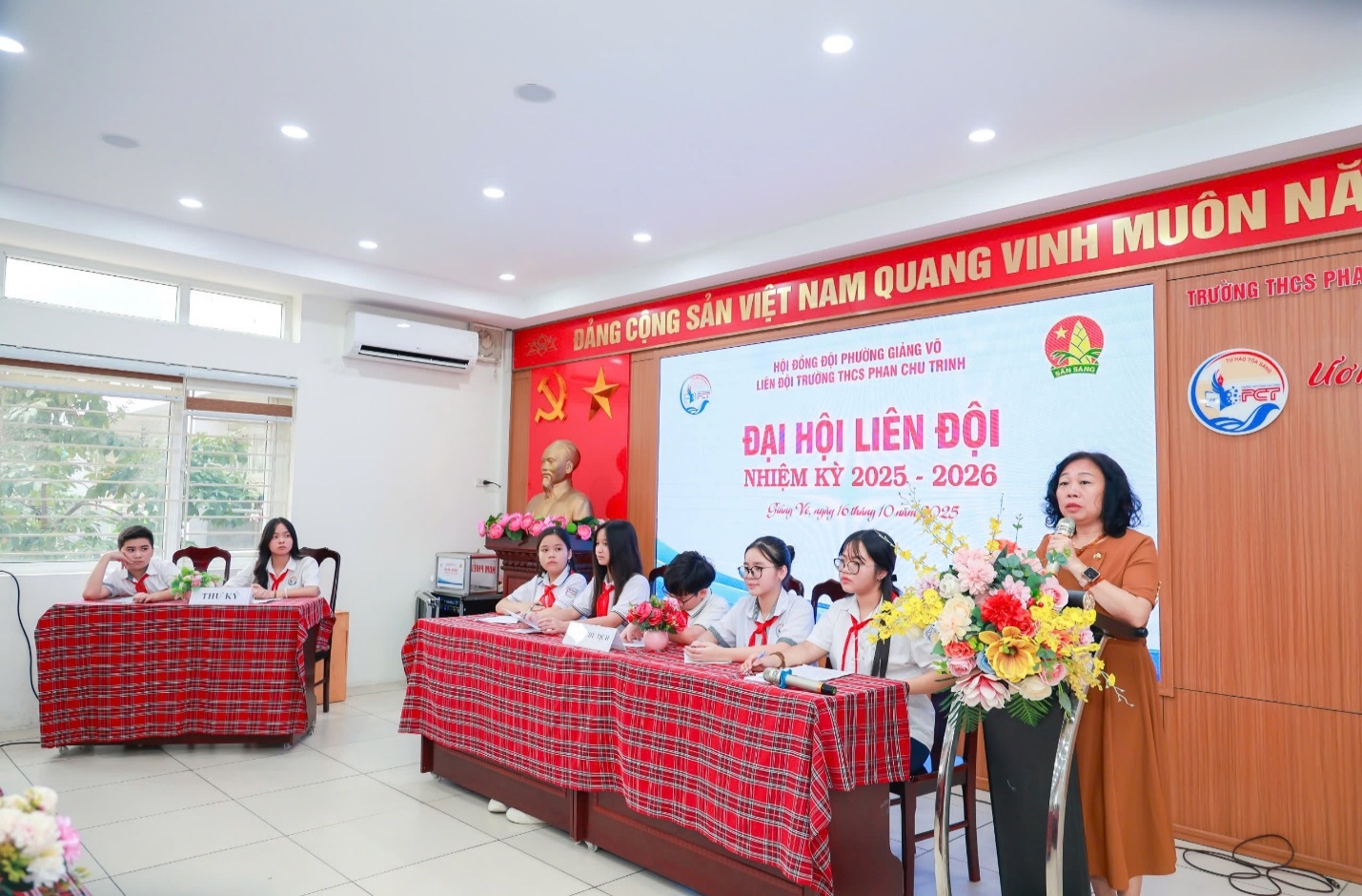 Thực hiện chương trình công tác Đội và phong trào thiếu nhi năm học 2025- 2026, bám sát nội dung chỉ đạo của Hội đồng Đội Thành phố và Hội đồng Đội Phường Giảng Võ, chiều ngày 16 tháng 10 năm 2025, Liên đội Trường THCS Phan Chu Trinh long trọng tổ chức Đại hội Liên đội nhiệm kỳ năm học 2025 – 2026. Đây là sự kiện quan trọng nhằm tổng kết, đánh giá kết quả hoạt động của Liên đội trong năm học 2024-2025 và đề ra phương hướng hoạt động cho năm học mới. Tham dự đại hội có cô giáo Trần Thị Minh Hạnh – Phó Hiệu trưởng nhà trường, thầy Nguyễn Phúc Long- TPT cùng các thầy cô trong Ban phụ trách, Chi đoàn giáo viên và 129 đội viên tiêu biểu xuất sắc đại diện cho 1.890 đội viên toàn Liên đội.