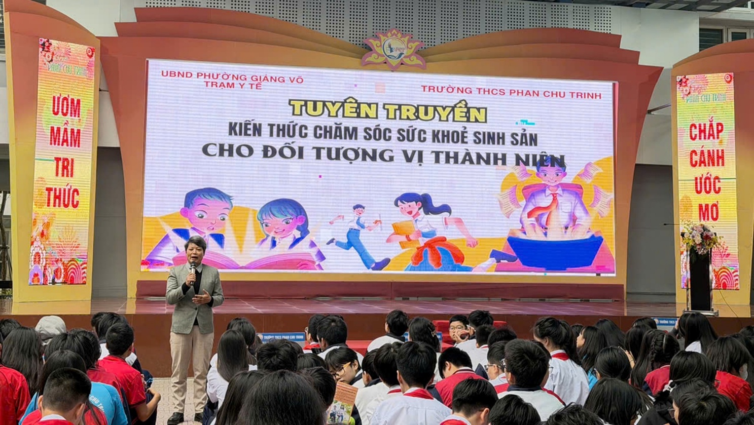 Sáng ngày 29/12/2025, tại Trường THCS Phan Chu Trinh, Trạm Y tế phường Giảng Võ đã tổ chức buổi tuyên truyền kiến thức chăm sóc sức khỏe sinh sản dành cho lứa tuổi vị thành niên. Hoạt động nhằm trang bị cho học sinh những hiểu biết cơ bản, khoa học và phù hợp về sự phát triển thể chất, tâm sinh lý trong giai đoạn trưởng thành, từ đó giúp các em biết cách tự chăm sóc, bảo vệ bản thân và xây dựng lối sống lành mạnh.