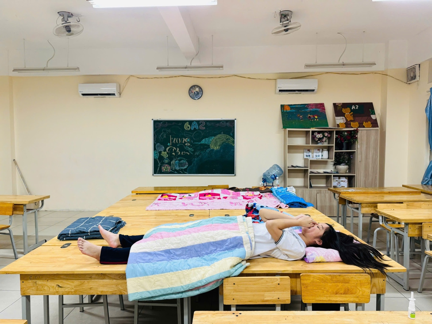 Học sinh yên tâm nghỉ ngơi tại phòng lớp