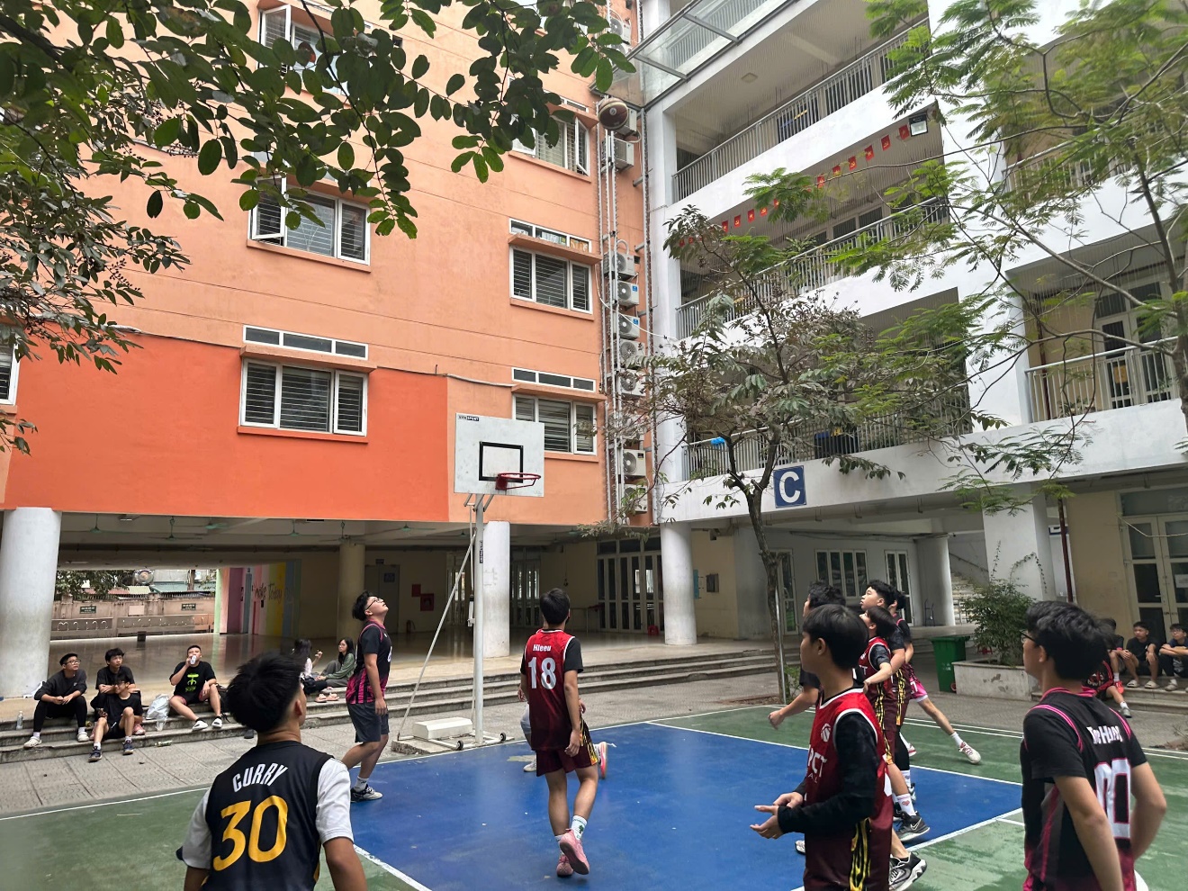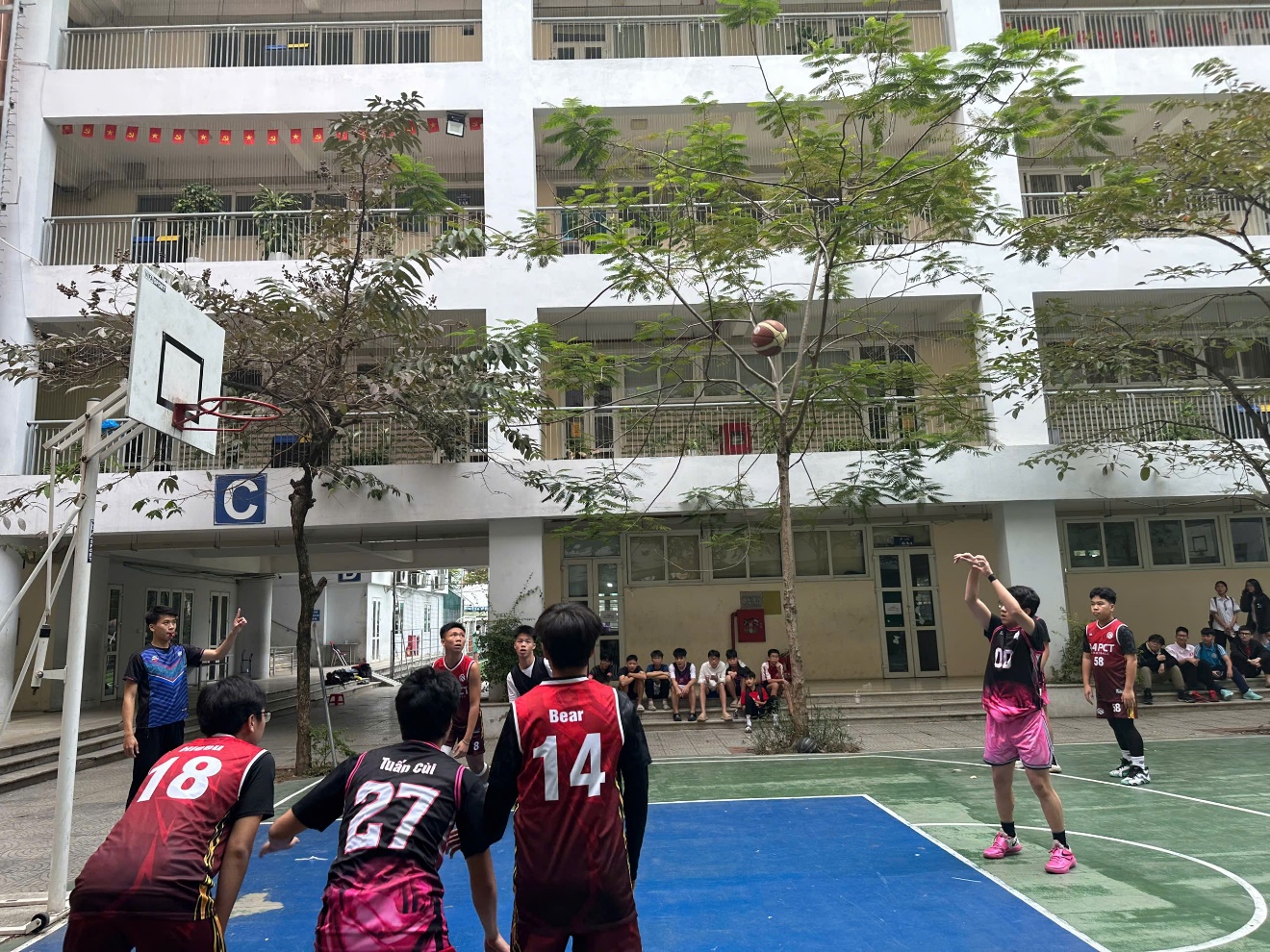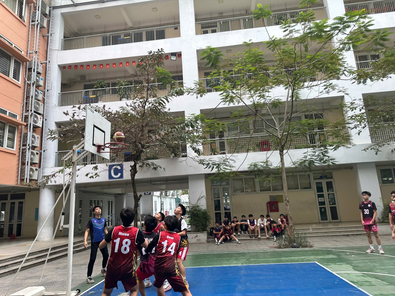 Từ rất sớm thứ 7 ngày 22/11, sân bóng rổ trường THCS Phan Chu Trinh đã không còn một chỗ trống. Học sinh khối 9 đứng kín quanh sân, cờ phướn bay rợp trời, tiếng hò reo vang lên không ngớt. Đây không chỉ là trận chung kết – mà là cuộc đối đầu giữa hai “đại diện hùng mạnh” suốt mùa giải: 9A4 với lối chơi tốc độ – kỷ luật và 9A10 nổi tiếng với thể lực dồi dào cùng khả năng bứt phá cực nhanh.