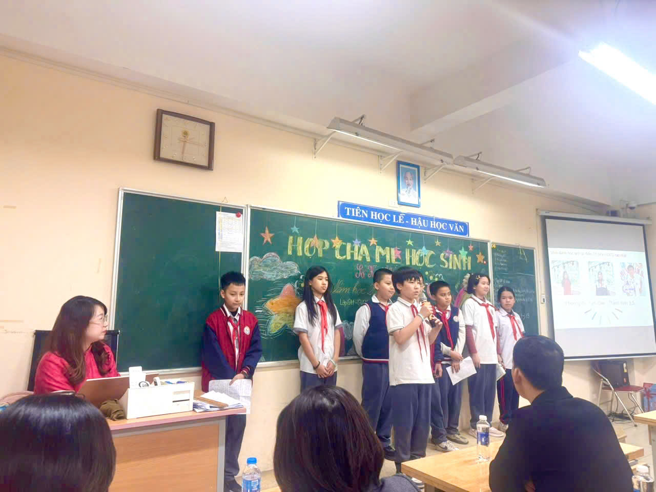 Bên cạnh những chia sẻ của GVCN, phụ huynh còn được lắng nghe báo cáo thành tích từ chính các em học sinh. Sự tham gia trực tiếp của học sinh vào buổi họp đã mang đến nhiều ấn tượng và cảm xúc cho phụ huynh bởi qua đây ba mẹ có thể thấy được sự trưởng thành, tự tin của các con.