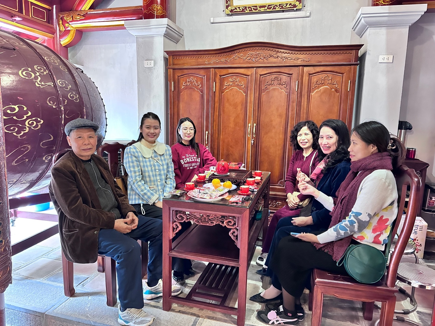 Cô Nguyễn Thanh Hoa (đứng thứ 2 từ trái sang) chụp ảnh lưu niệm cùng đại diện Phường và Ban quan lý Đền Voi Phục