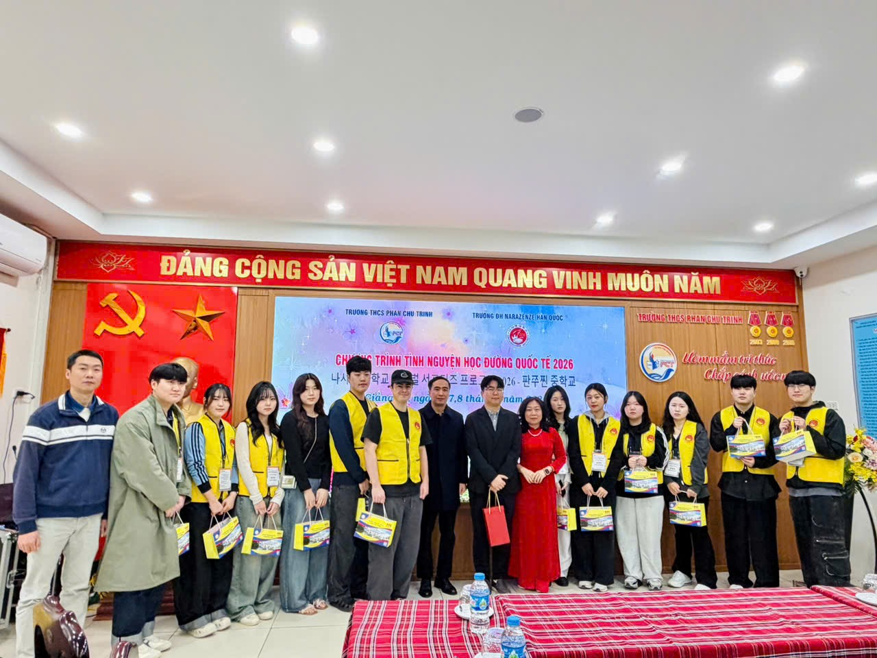 Sáng ngày 06/01/2026, trong không khí thân thiện và cởi mở, Trường THCS Phan Chu Trinh đã vinh dự đón tiếp đoàn giảng viên và sinh viên đến từ Trường Đại học Narazenze Hàn Quốc đến giao lưu văn hóa và tham gia các hoạt động tình nguyện ý nghĩa tại nhà trường.