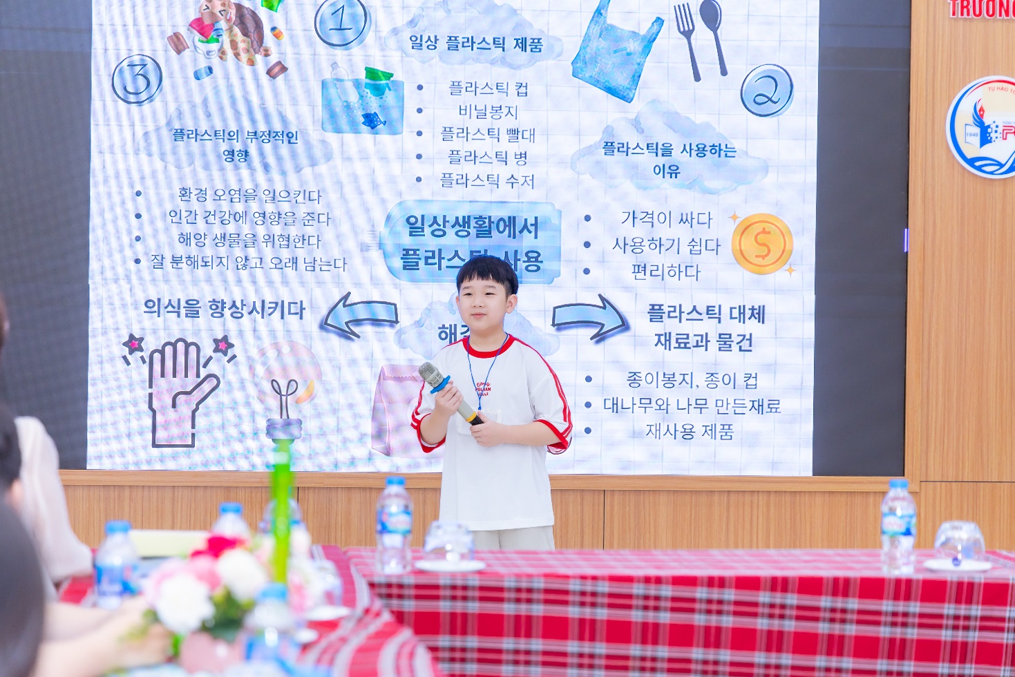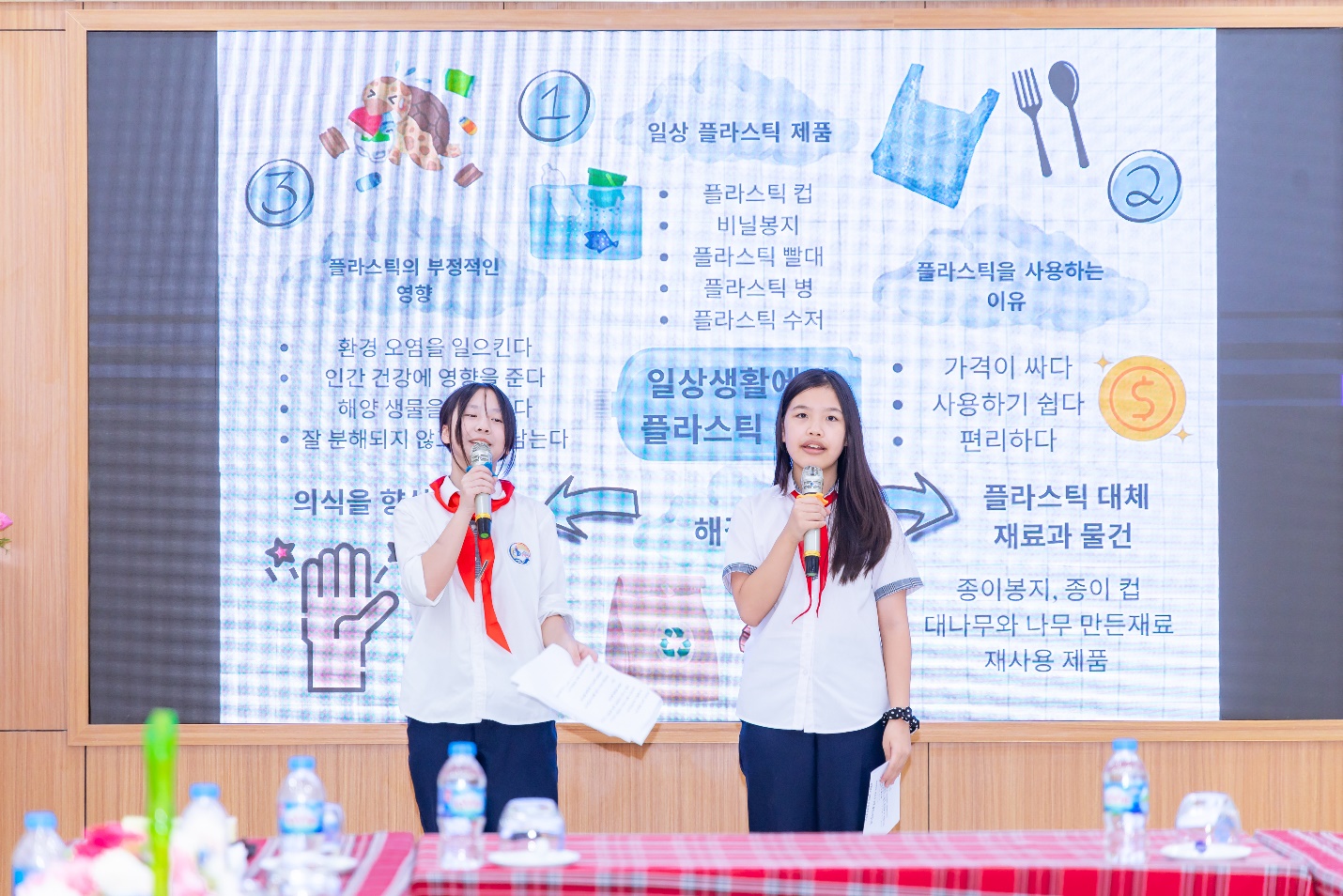 Trong phần thảo luận buổi sáng, học sinh hai nước cùng trao đổi về vấn đề sử dụng đồ nhựa trong đời sống hằng ngày và xây dựng sơ đồ tư duy bằng tiếng Hàn. Nhiều em học sinh trường Phan Chu Trinh chia sẻ rằng đây là lần đầu tiên các em được thảo luận một chủ đề môi trường với bạn bè quốc tế ngay tại lớp học, và cảm thấy rất tự hào khi có thể sử dụng ngoại ngữ để bày tỏ suy nghĩ của mình. Các bạn nhỏ đến từ Hàn Quốc cũng bày tỏ sự bất ngờ và thích thú khi chứng kiến học sinh Việt Nam vừa năng động, vừa thân thiện, lại giàu ý tưởng sáng tạo trong việc tìm giải pháp thay thế nhựa.