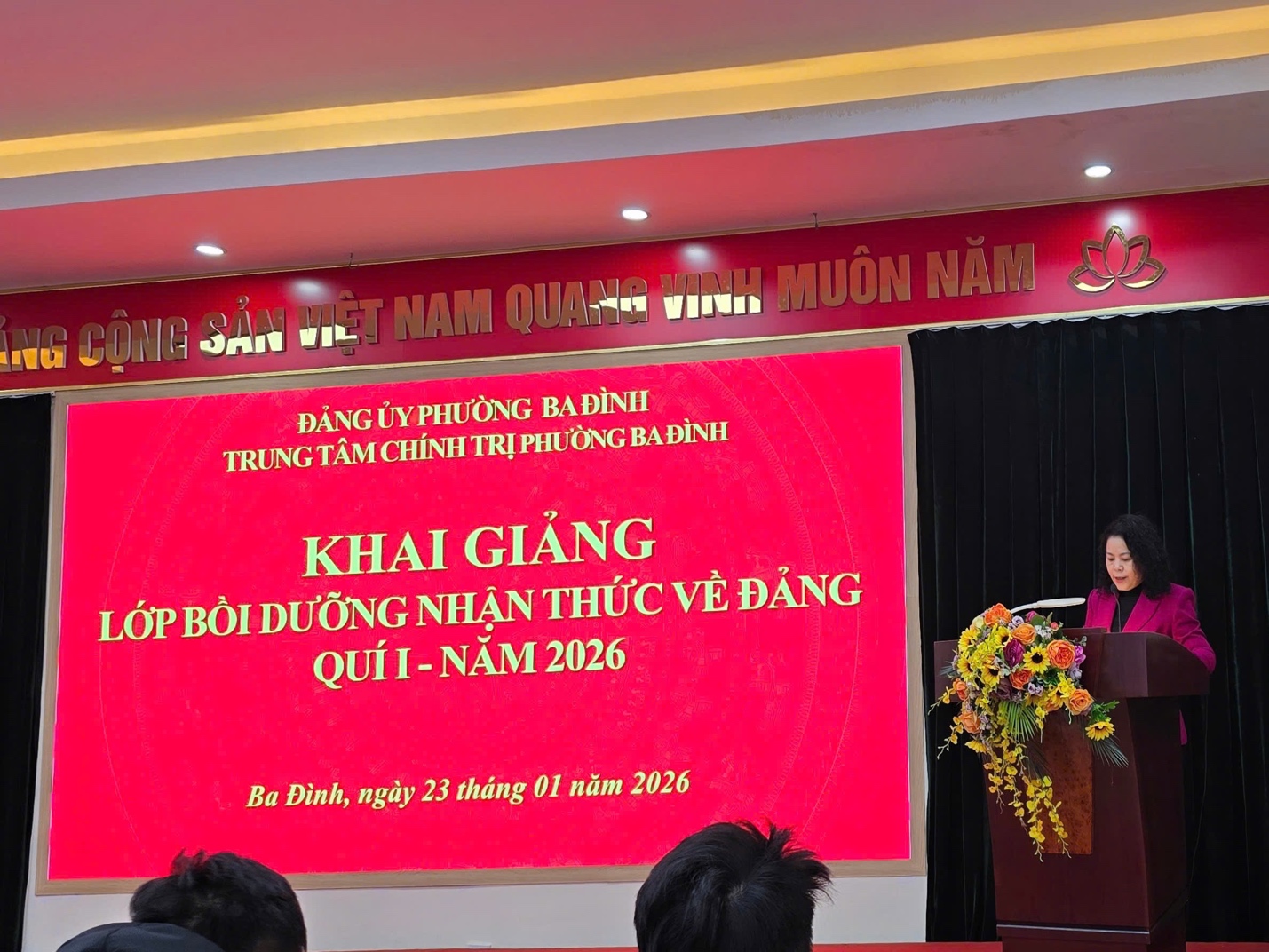 Sáng ngày 23/1/2026, tại Trung tâm Chính trị Phường Ba Đình đã long trọng diễn ra lễ khai mạc lớp bồi dưỡng nhận thức về Đảng quý I năm 2026. Buổi lễ được tổ chức trong không khí trang nghiêm, đúng quy định, thể hiện sự quan tâm sâu sắc của cấp ủy Đảng và chính quyền địa phương đối với công tác giáo dục chính trị, tư tưởng cho đội ngũ quần chúng ưu tú.