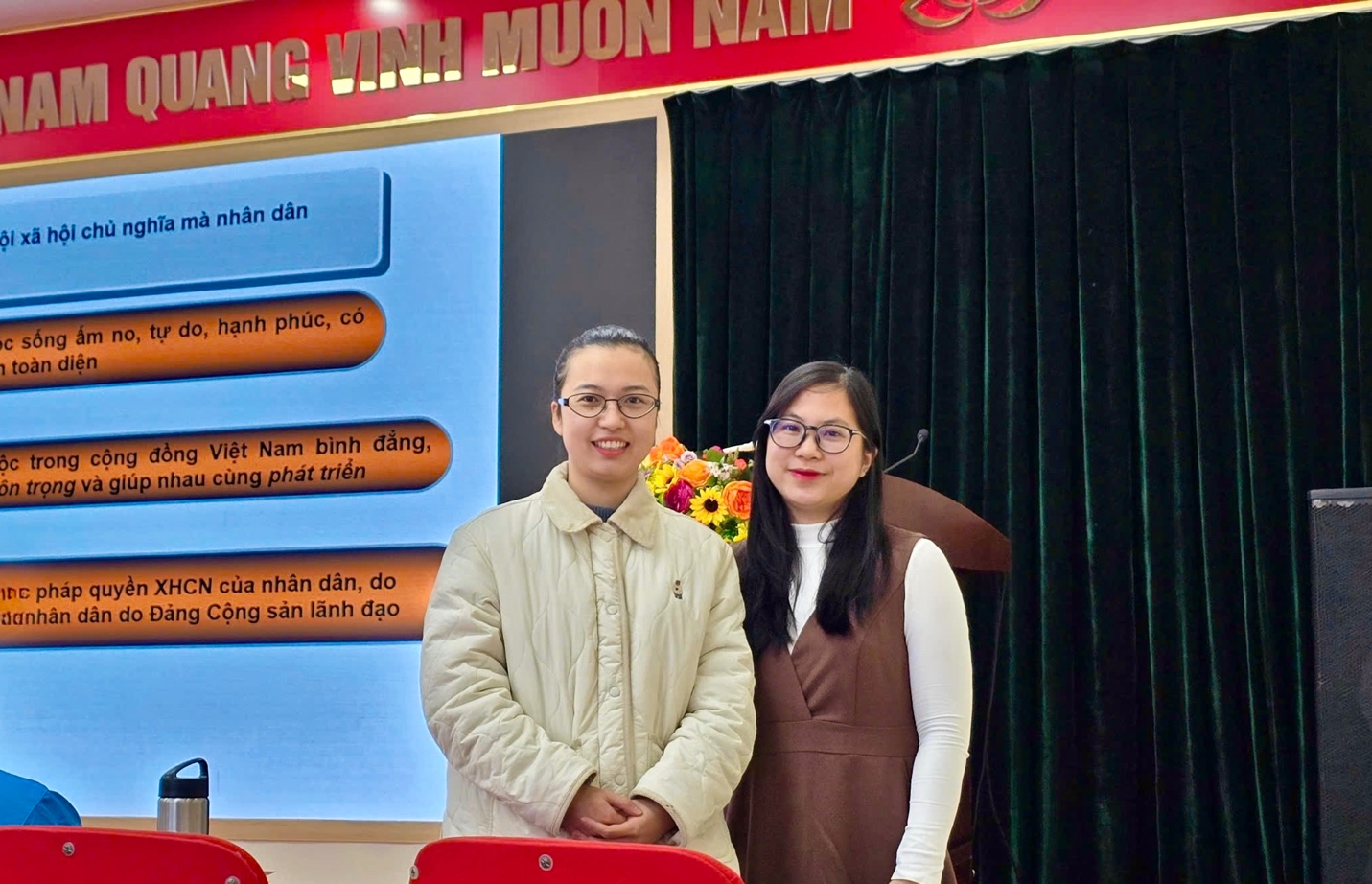 Trong thời gian tham gia lớp học, cô Trần Hà My và cô Nguyễn Thu Vân xác định rõ tinh thần học tập nghiêm túc, cầu thị, chấp hành tốt nội quy lớp học, tích cực trao đổi, thảo luận để tiếp thu hiệu quả các nội dung được truyền đạt. Đây sẽ là nền tảng quan trọng để hai cô tiếp tục tu dưỡng, rèn luyện, phấn đấu trở thành đảng viên Đảng Cộng sản Việt Nam trong thời gian tới, góp phần xây dựng Chi bộ và Trường THCS Phan Chu Trinh ngày càng vững mạnh.