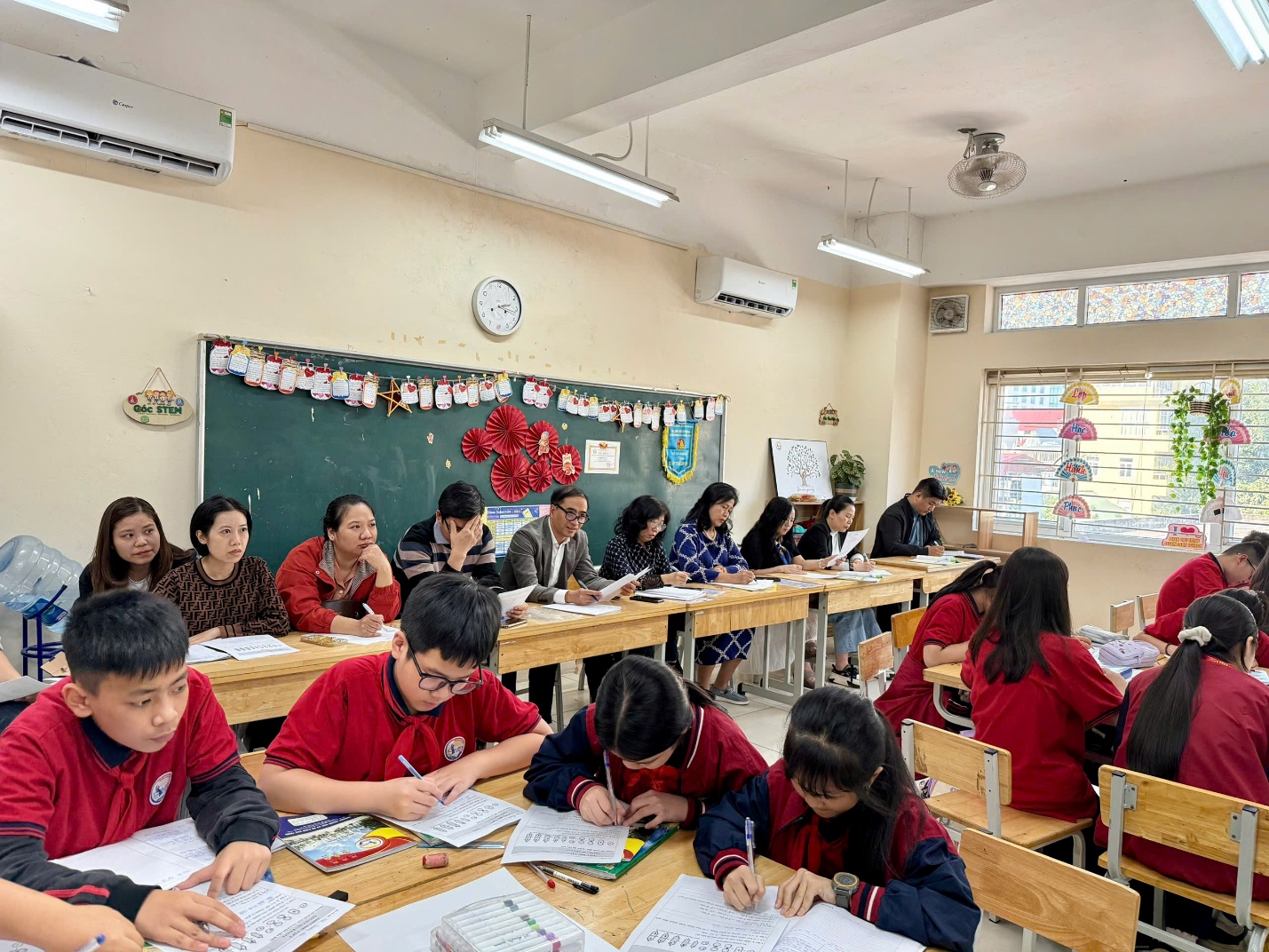 Ban giám hiệu và các thầy cô của nhà trường tham gia tiết học dự thi
