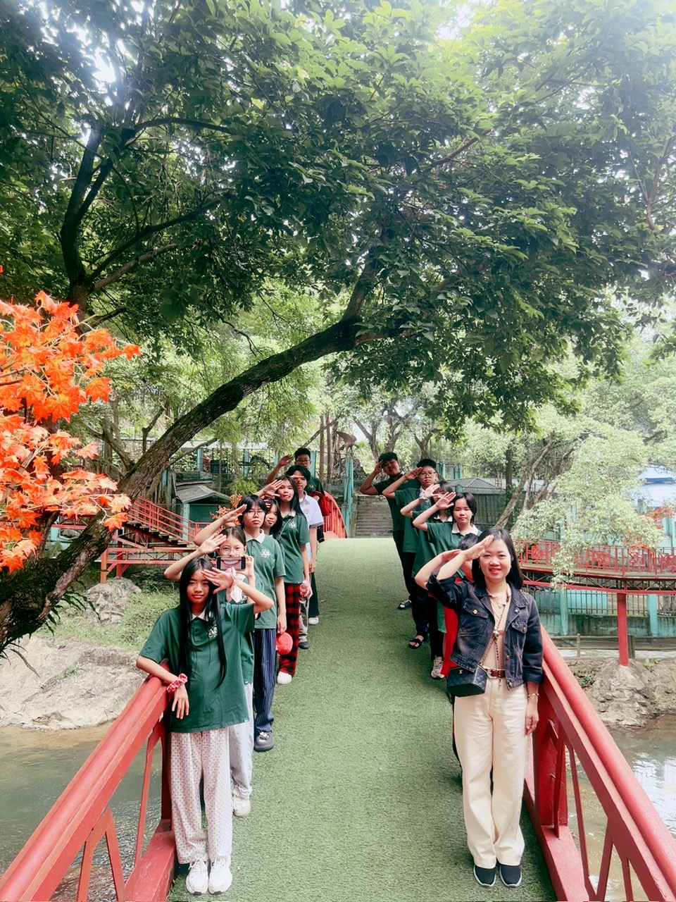 Tập thể 7A5 chụp ảnh lưu niệm tại cổng Ao Vua