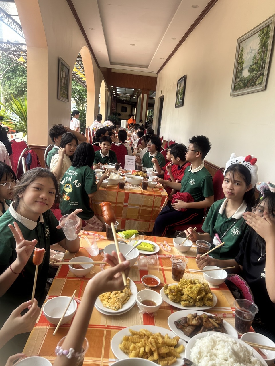 Bữa trưa tại khu nhà hàng Ao Vua đã trở thành một kỷ niệm ấm áp không kém. Không chỉ đơn thuần là thưởng thức những món ăn giản dị, mà đó còn là khoảnh khắc cả lớp cùng quây quần đầm ấm bên mâm cơm. Giữa tiếng trò chuyện rôm rả, tiếng cười thân tình, mọi người đã lưu lại biết bao khoảnh khắc thân thương, chụp vội những bức ảnh kỷ niệm đầy ý nghĩa về tình bạn và tuổi học trò.