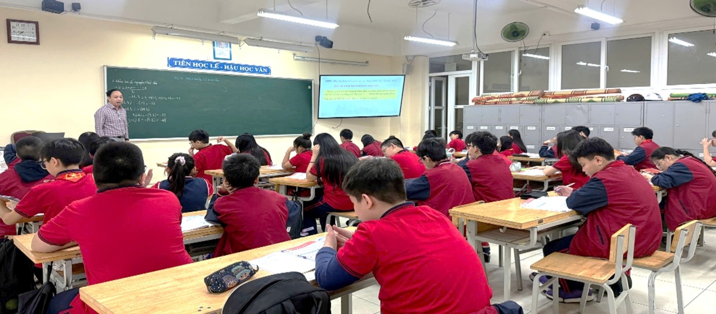 Trong khuôn khổ Hội thi Giáo viên dạy giỏi môn Toán cấp trường, thầy Nguyễn Vũ Tài đã thực hiện tiết dạy bài “Phép nhân số nguyên” cho học sinh lớp 6A8. Tiết học được xây dựng công phu, có sự kết hợp hài hòa giữa hoạt động nhóm, trò chơi học tập, khai thác tư duy của học sinh và ứng dụng công nghệ thông tin thông qua bài giảng trình chiếu sinh động. Đây là bài học quan trọng trong chương trình Toán 6, đặt nền tảng cho toàn bộ phần số nguyên và các quy tắc tính toán sau này.