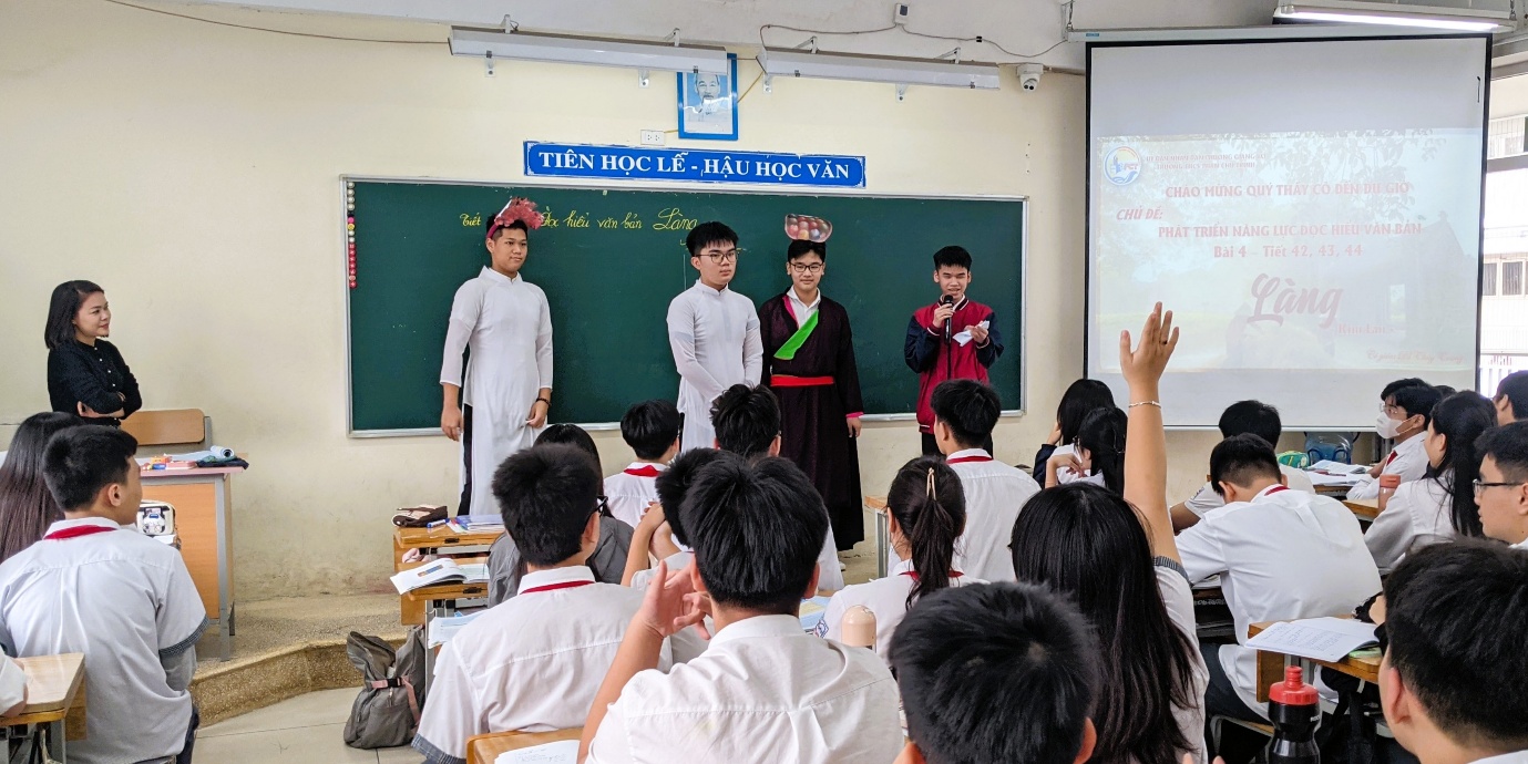 Tiết học mở đầu bằng hoạt động khởi động độc đáo: “Cuộc thi sắc đẹp nam vương”. Ba “thí sinh” đại diện cho Hà Nội, Hải Phòng và Bắc Ninh được học sinh nhập vai, lần lượt giới thiệu những nét đặc sắc của vùng quê mình. Không khí lớp học nhanh chóng trở nên vui tươi với những màn trình diễn dí dỏm, thông minh. Từ đó, giáo viên khéo léo dẫn dắt học sinh vào chủ đề chính của bài: tình yêu quê hương – một nội dung cốt lõi của truyện ngắn “Làng”.