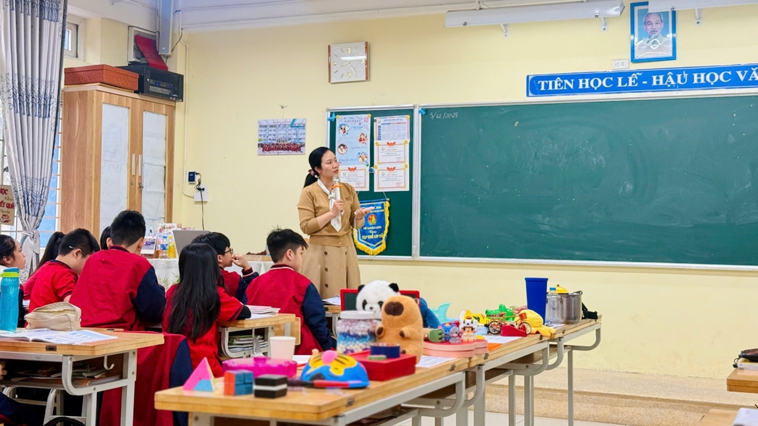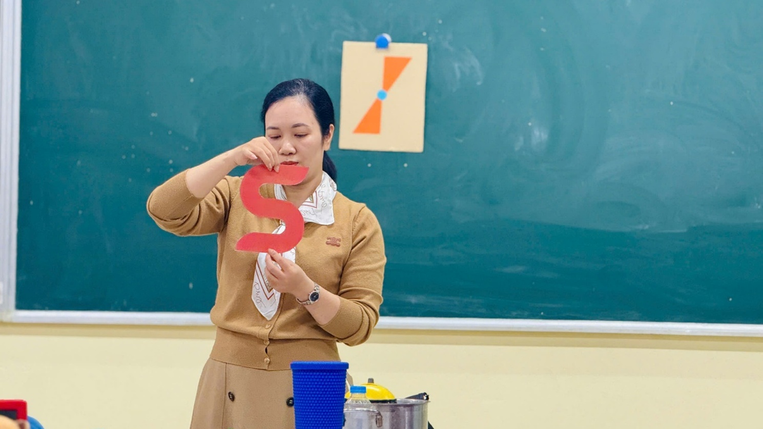 Cách dẫn dắt nhẹ nhàng nhưng chặt chẽ của cô giáo Nguyễn Thu Dung đã tạo nên một không khí học tập tích cực, giúp học sinh tự khám phá kiến thức thay vì tiếp nhận thụ động. Đồng thời, cô khéo léo kết nối bài học với thực tiễn, giúp học sinh nhận ra sự hiện diện của đối xứng trong thiên nhiên, nghệ thuật và cuộc sống.