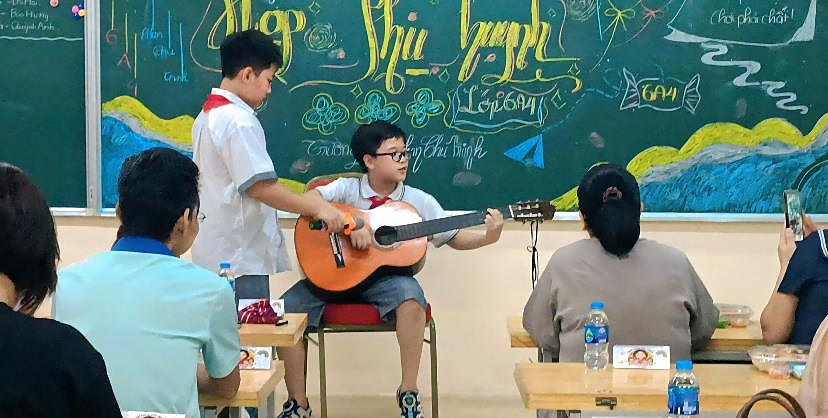 Để chuẩn bị cho buổi họp, các em học sinh đã phát huy khả năng sáng tạo qua việc vẽ và trang trí bảng lớp, mang đến không gian tươi vui, ấm áp. Trong chương trình, nhiều học sinh tự tin thể hiện tài năng ca hát, múa, đàn, tạo nên những tiết mục văn nghệ đặc sắc, để lại nhiều ấn tượng đẹp trong lòng phụ huynh.