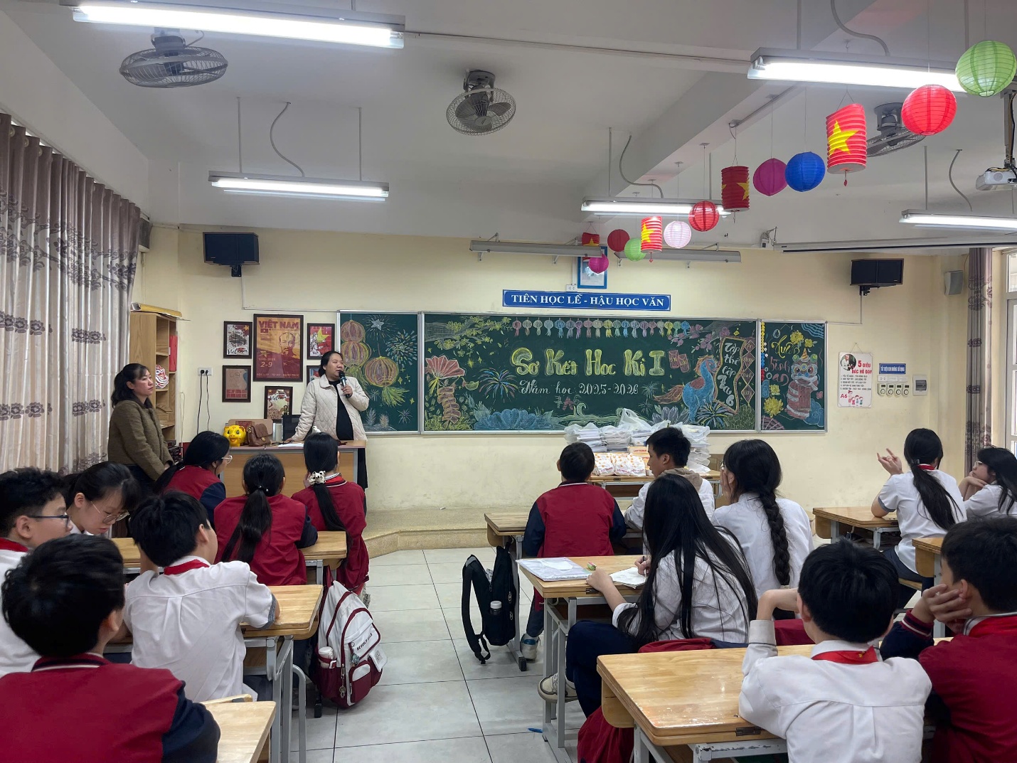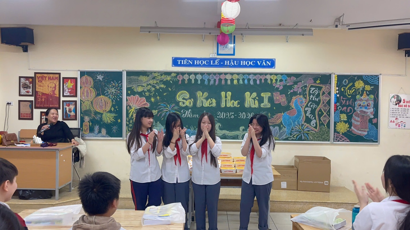 Buổi sơ kết HKI diễn ra trong không khí trang nghiêm, ấm áp với sự góp mặt của cô giáo chủ nhiệm Nghiêm Hồng Nhung, các bác phụ huynh và cả những bạn nhỏ thân quen của đại gia đình 7A6, tạo nên một không gian gần gũi, chan chứa yêu thương và sự đồng hành.