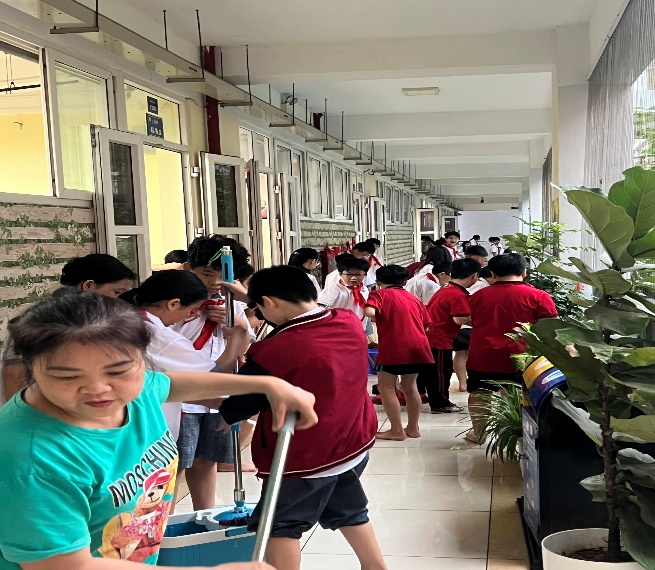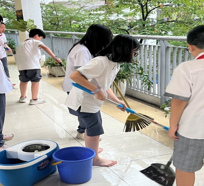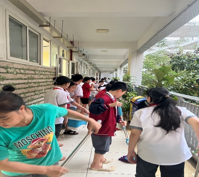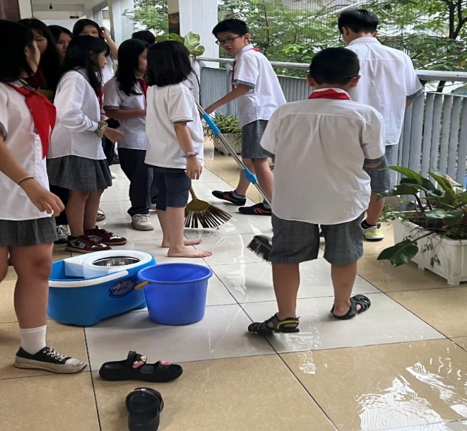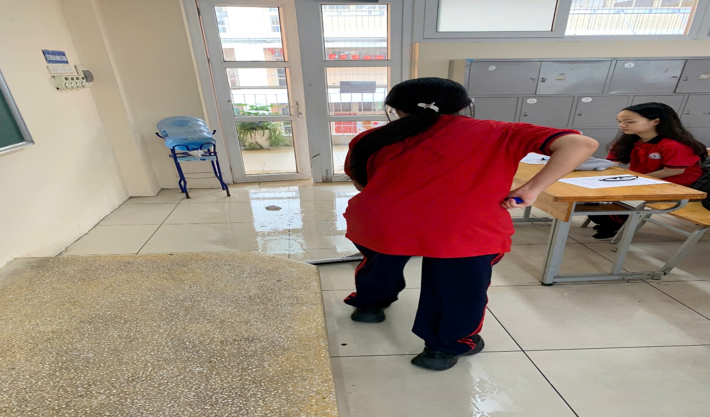 Những hoạt động như quét nước phòng chống tràn vào lớp học, lau dọn lớp không chỉ giúp xử lý tình huống khẩn cấp mà còn là bài học thực tế về kỹ năng sơ cứu tài sản, quản lý rủi ro và làm việc nhóm của các em học sinh. Đây cũng chính là một trong những nội dung quan trọng mà trường THCS Phan Chu Trinh đã và đang lồng ghép hiệu quả trong các giờ giáo dục kỹ năng sống, hoạt động trải nghiệm.