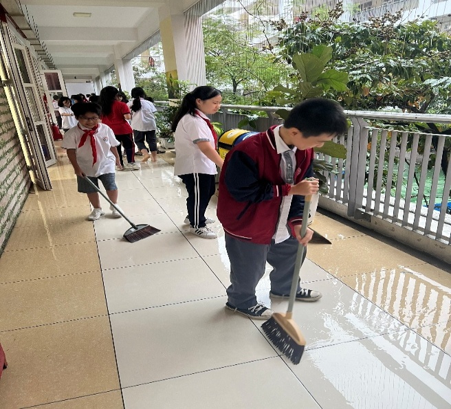 Với tinh thần chủ động, trách nhiệm với cộng đồng, dưới sự hướng dẫn của Ban giám hiệu và giáo viên nhà trường, các em học sinh Trường THCS Phan Chu Trinh đã cùng nhau tham gia tích cực một số công việc như: quét sàn, đẩy nước, ngăn không để nước tràn vào lớp học. Những hành động này tuy nhỏ bé nhưng lại mang ý nghĩa lớn, góp phần giữ gìn cơ sở vật chất của lớp và nhà trường.