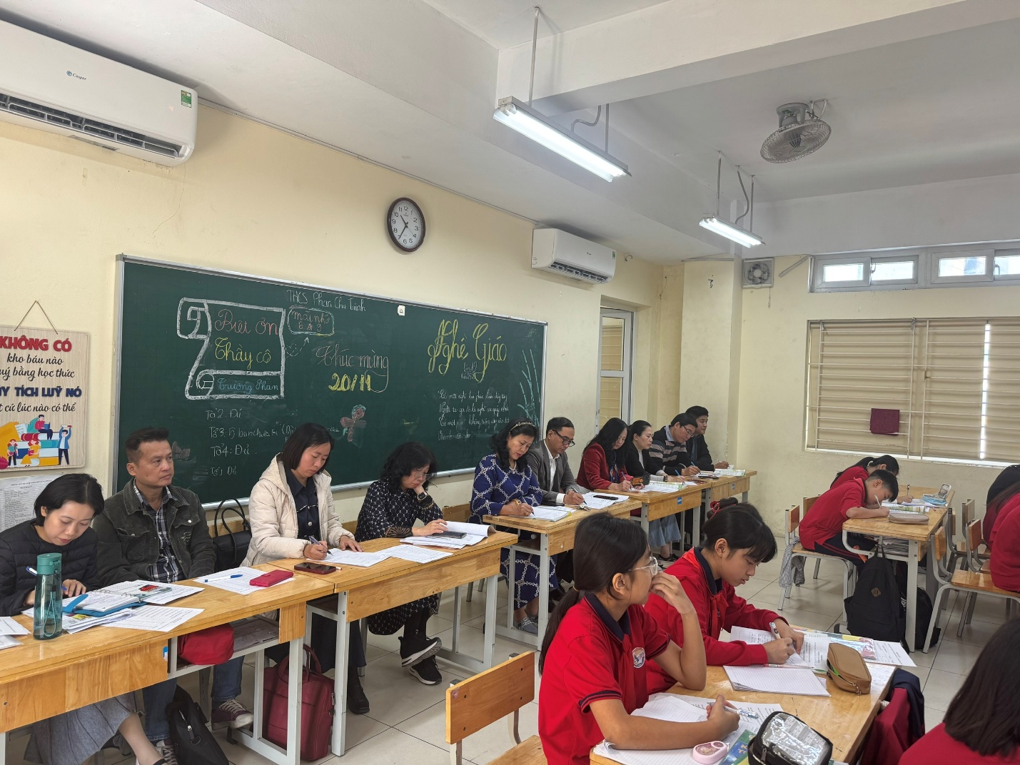 Ban giám hiệu cùng các giáo viên nhà trường tham gia dự giờ học hỏi kinh nghiệm