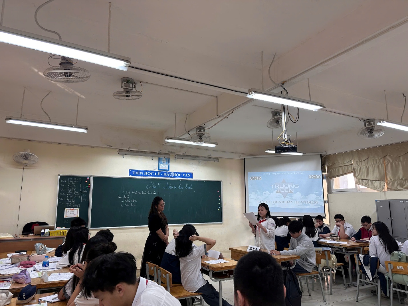 Ở môn Giáo dục công dân, cô Dương Thị Minh Diệp triển khai bài Bảo vệ hòa bình bằng chuỗi hoạt động hiện đại, kết hợp trò chơi khởi động, video tư liệu và hình thức tranh biện theo mô hình “Trường Teen”. Qua đó, học sinh được rèn luyện tư duy phản biện, kỹ năng hợp tác và khả năng trình bày quan điểm, đồng thời hiểu rõ hơn ý nghĩa của hòa bình và trách nhiệm công dân trong đời sống hôm nay.