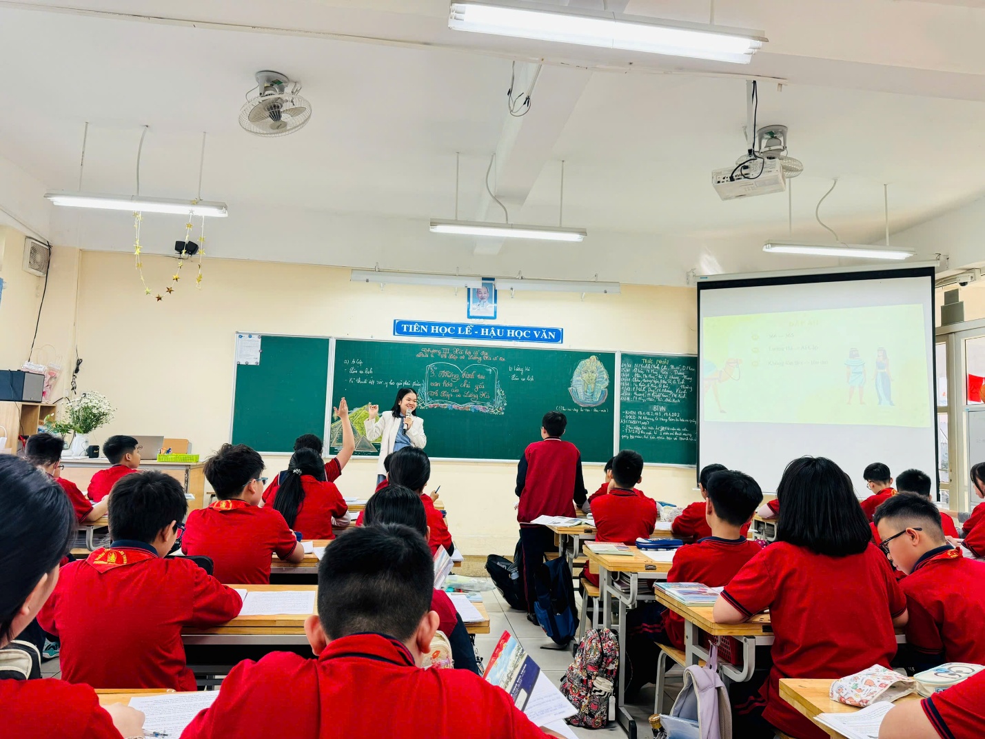Đặc biệt, tiết Trả bài kiểm tra giữa kì I của cô Vũ Hồng Nhung mang đến bầu không khí giàu sáng tạo: học sinh đóng vai MC, phỏng vấn khách mời, tham gia trò chơi “Truy tìm giọng nói bí ẩn” và thực hành sửa lỗi theo chiến thuật “Bông hồng – Gai nhọn – Nụ hoa”. Các hoạt động linh hoạt giúp học sinh vừa củng cố kiến thức, vừa hình thành kỹ năng tự đánh giá.