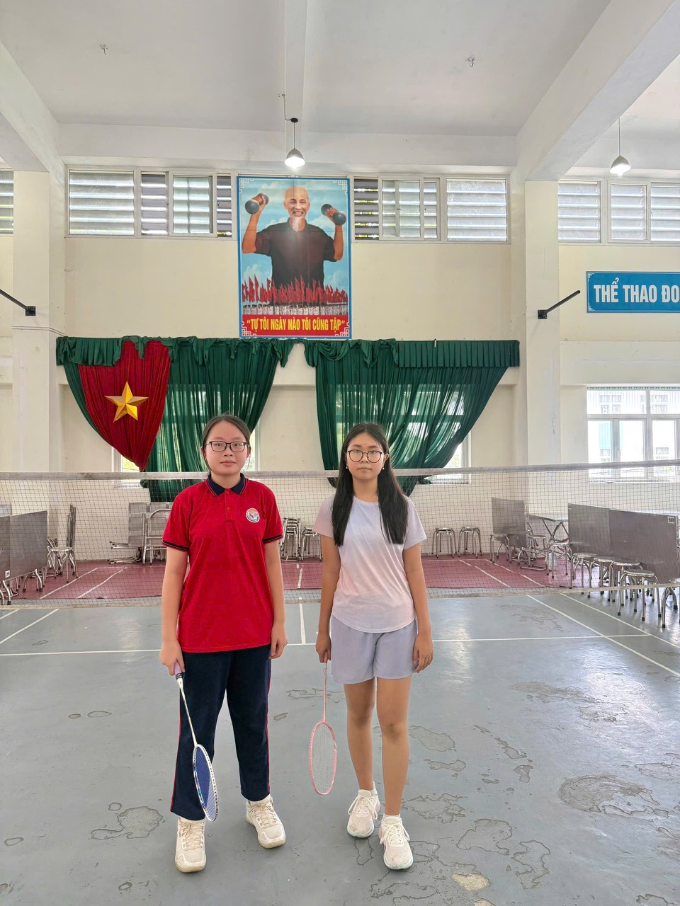 Hai vận động viên tham gia đấu chung kết nữ khối 6 từ lớp 6A7 và 6A10