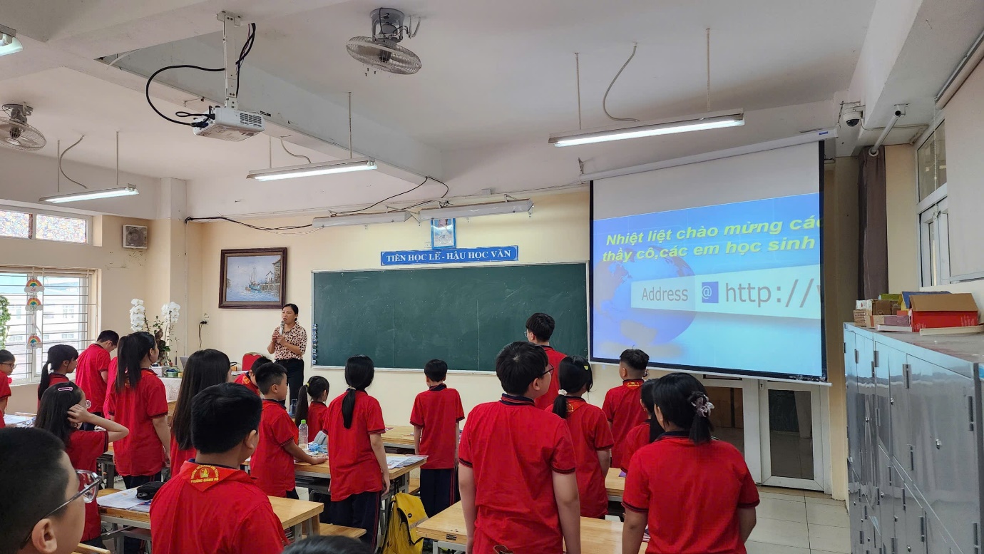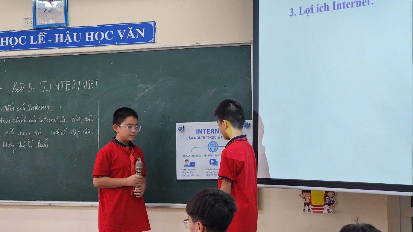 Bằng những hình ảnh trực quan, video minh họa sinh động cùng hoạt động thảo luận nhóm, cô giáo đã giúp các em tiếp cận kiến thức một cách nhẹ nhàng, tự nhiên. Học sinh hào hứng chia sẻ ý kiến, đưa ra ví dụ thực tế và cùng nhau khám phá những ứng dụng quen thuộc như tìm kiếm thông tin, học trực tuyến, hay gửi thư điện tử.