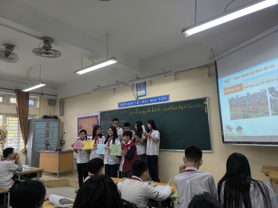 Tiết học được tổ chức theo hướng phát huy tính chủ động, sáng tạo của học sinh. Dưới sự hướng dẫn linh hoạt của cô giáo, học sinh nhanh chóng nắm được yêu cầu bài học, hiểu rõ cách trình bày quy tắc, luật lệ sao cho mạch lạc, rõ ràng, dễ hiểu và phù hợp với người nghe.