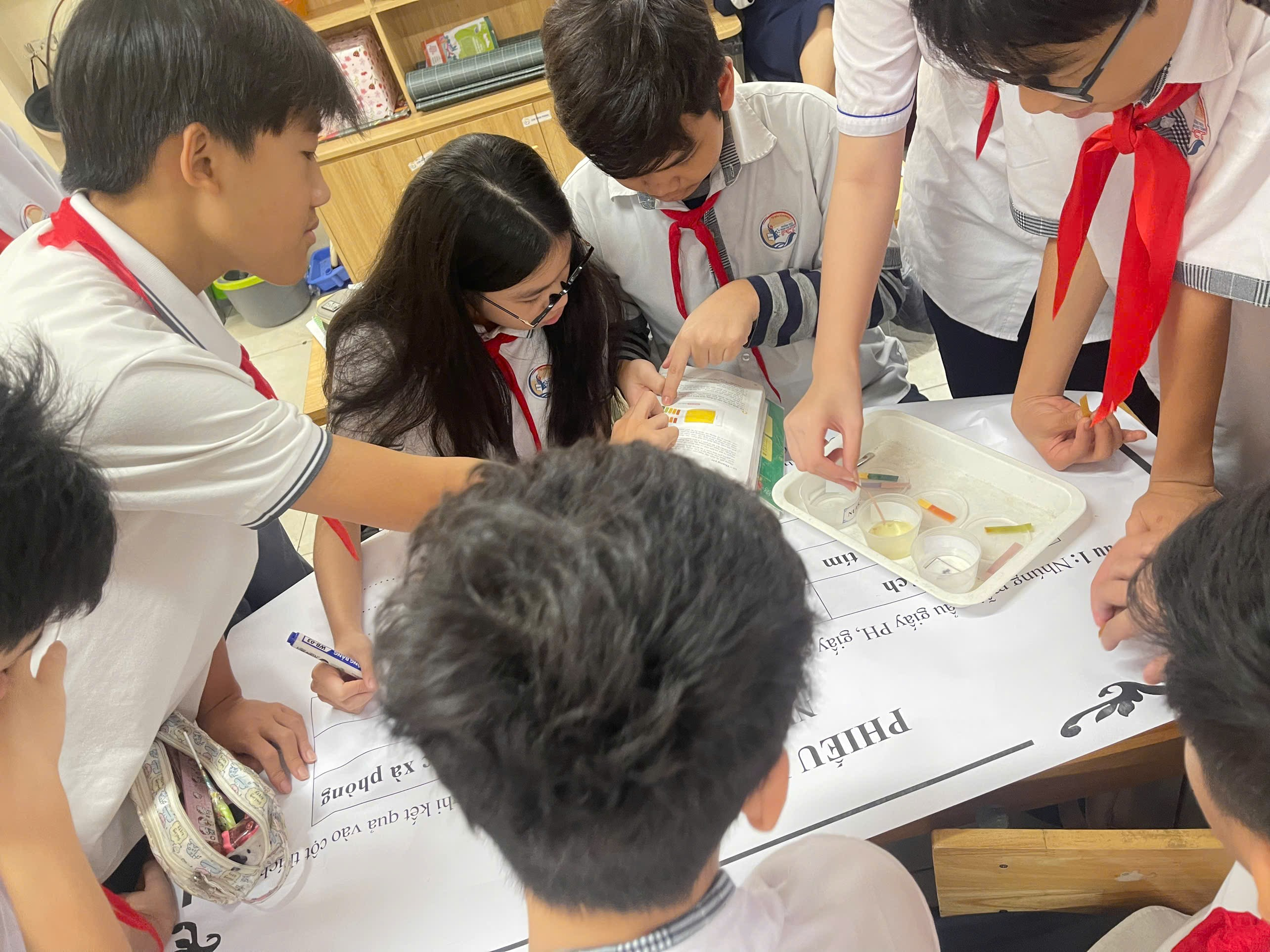 Học sinh thực hành sử dụng giấy pH theo nhóm
