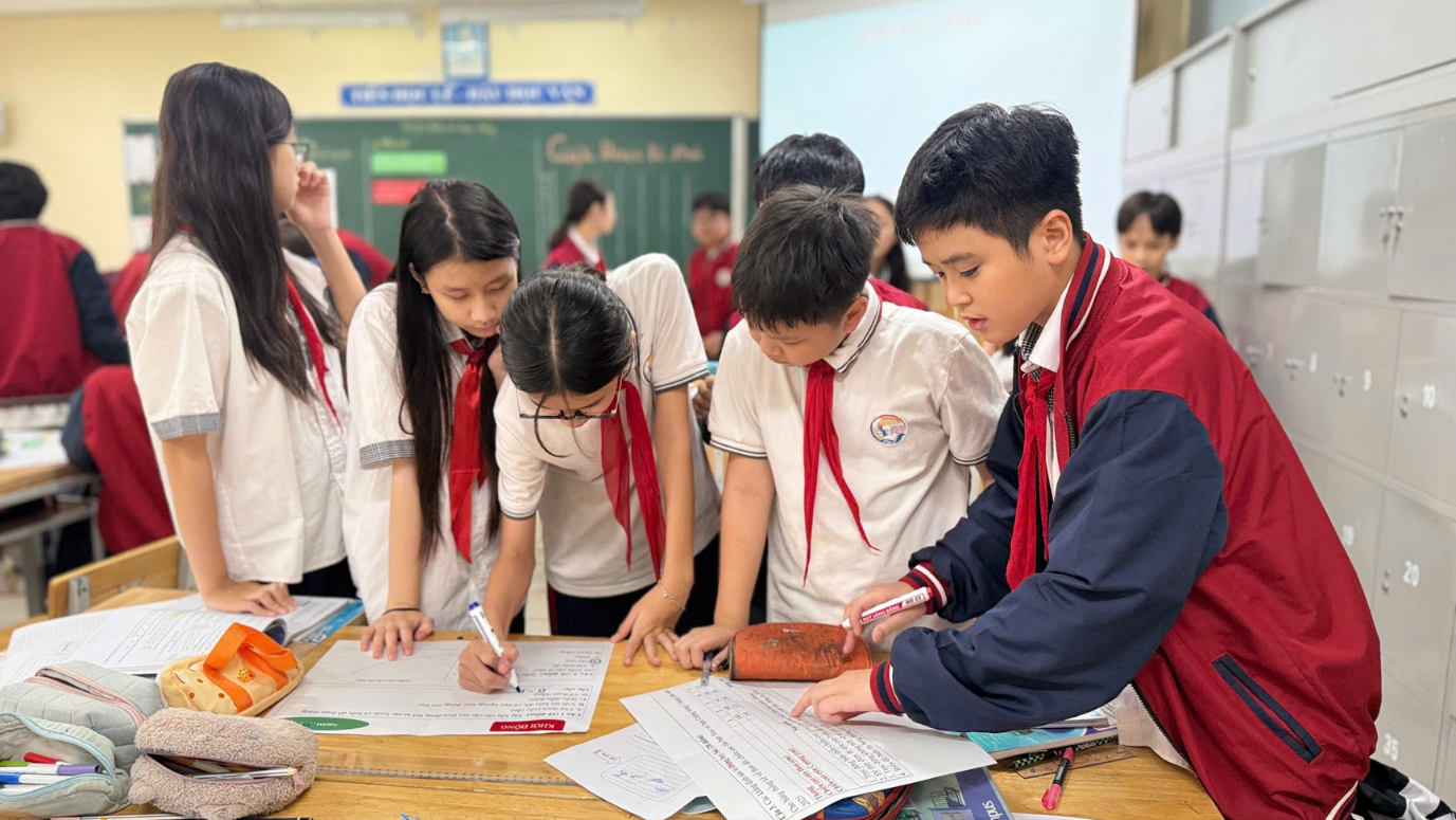 Hoạt động nhóm được triển khai đồng bộ giúp học sinh chủ động tiếp cận kiến thức, đồng thời tạo môi trường học tập sinh động và hiệu quả. Không khí lớp học trở nên cởi mở khi học sinh liên tục đặt câu hỏi, bổ sung ý kiến và hỗ trợ nhau hoàn thành nhiệm vụ. Cách tổ chức này phát huy tối đa tính tích cực, giúp các em cảm thấy mình thực sự là chủ thể của hoạt động học tập.
