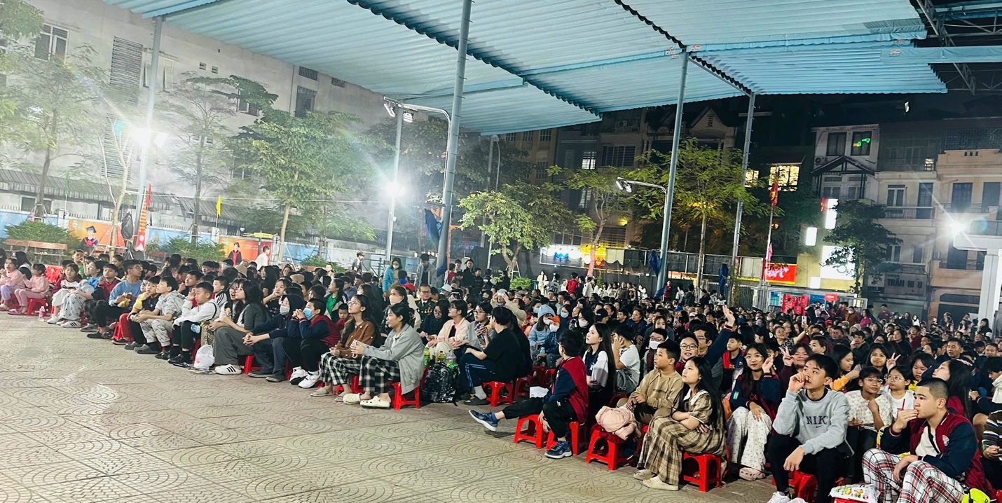 Tới 19h, sân trường đã có gần 2000 khán giả ổn định vị trí