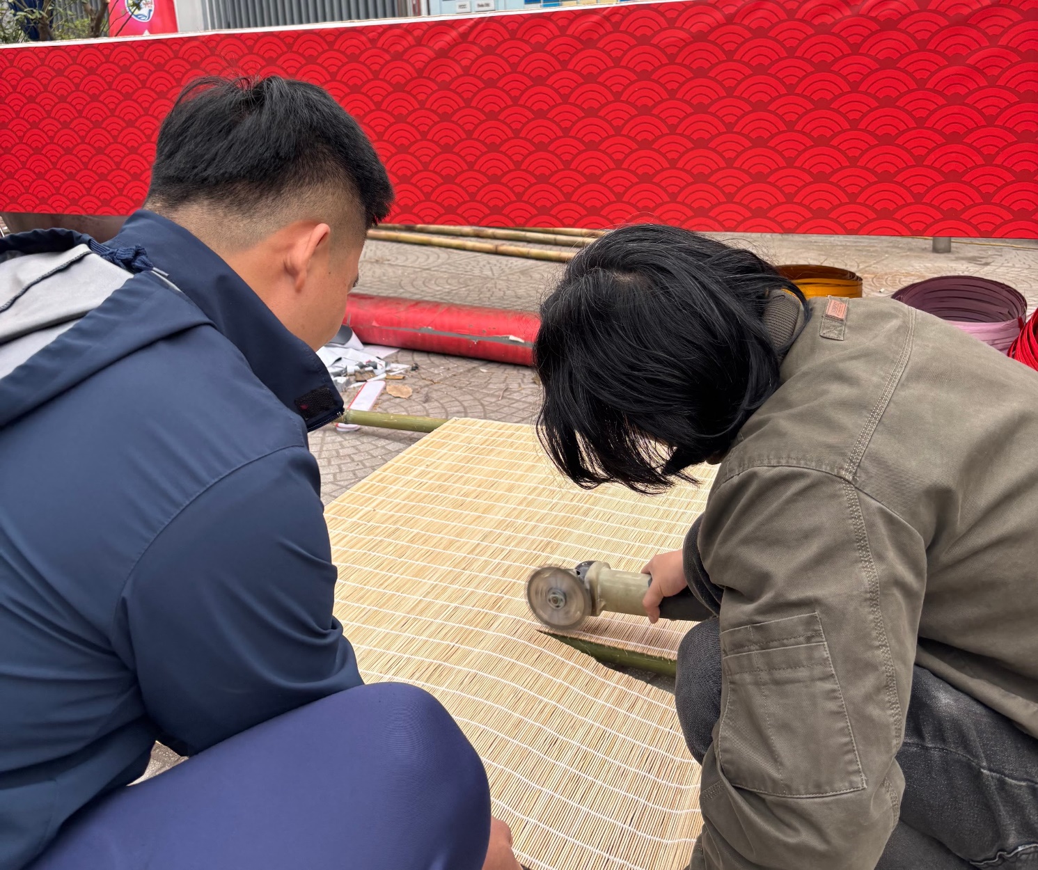 Thầy Vương và thầy Đảm tạo hình cho từng lá cọ