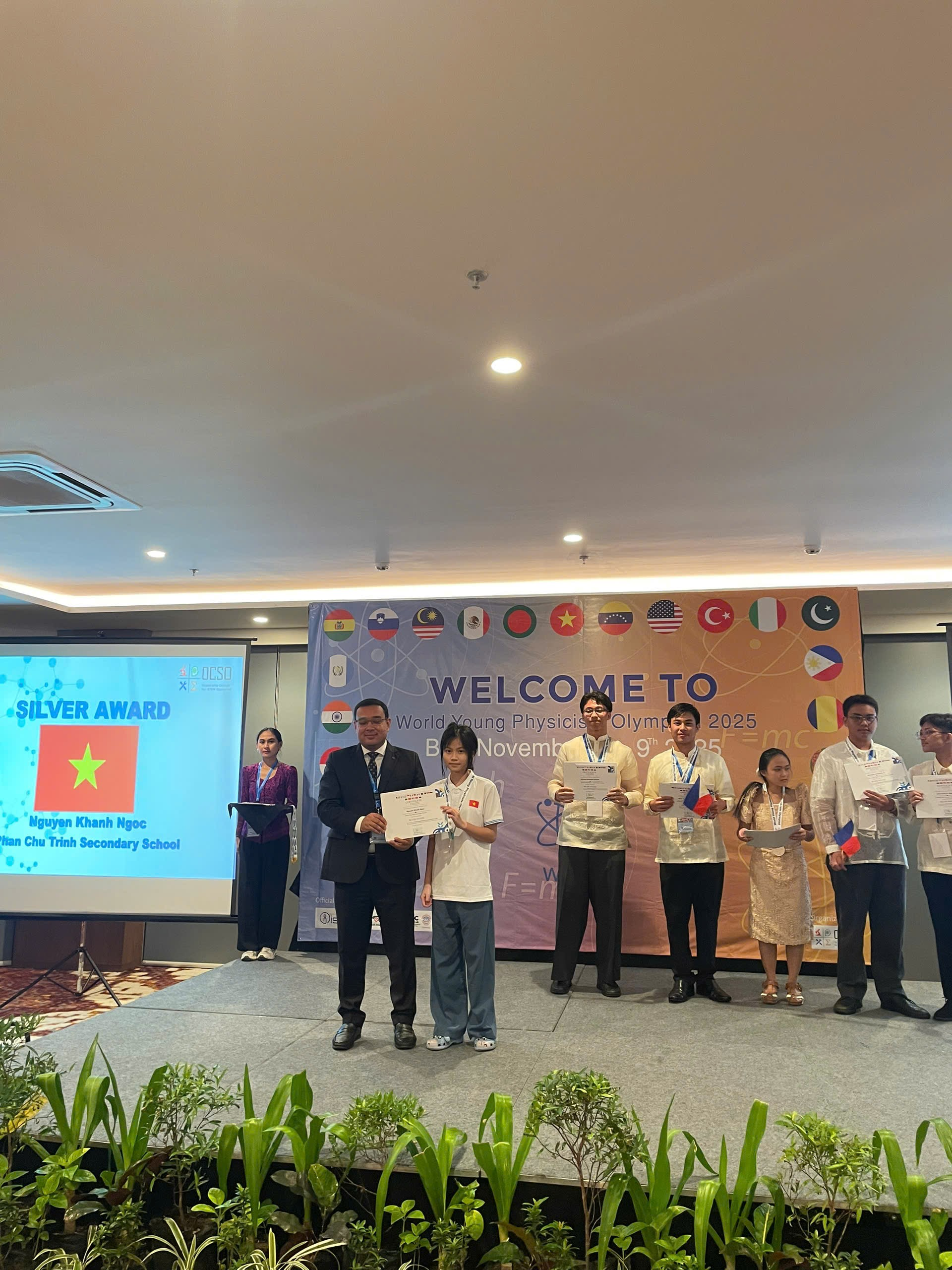 Trong kỳ thi Olympic Vật lý Trẻ Thế giới năm 2025 (World Young Physicists’ Olympiad – WYPO 2025; em Nguyễn Khánh Ngọc học sinh lớp 8A7 Trường THCS Phan Chu Trinh, đã xuất sắc giành được Huy chương Bạc, mang về niềm tự hào cho nhà trường.