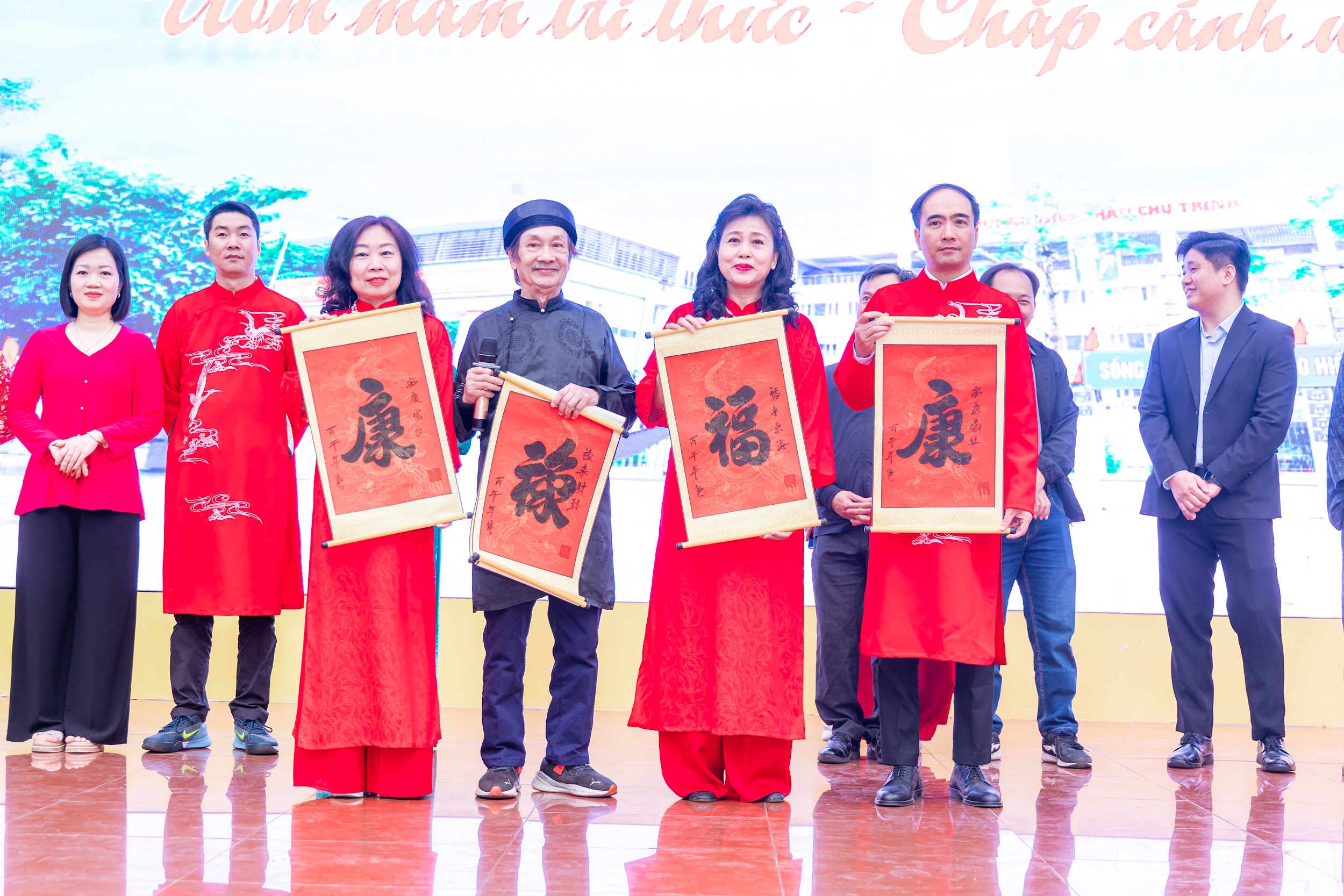 Trong khuôn viên trường, hình ảnh thầy đồ trong trang phục áo dài khăn đóng, bên nghiên mực, giấy đỏ đã thu hút sự quan tâm của đông đảo học sinh và thầy cô. Những nét chữ thư pháp mềm mại, uyển chuyển được thầy đồ nắn nót viết nên, gửi gắm những ước mong tốt đẹp cho năm mới như “Nhân”, “Lễ”, “Trí”, “Tín”, “Hiếu học”, “Thành công”, “Sức khỏe”. Mỗi con chữ không chỉ là một tác phẩm nghệ thuật mà còn chứa đựng bài học sâu sắc về đạo làm người và tinh thần học tập.
