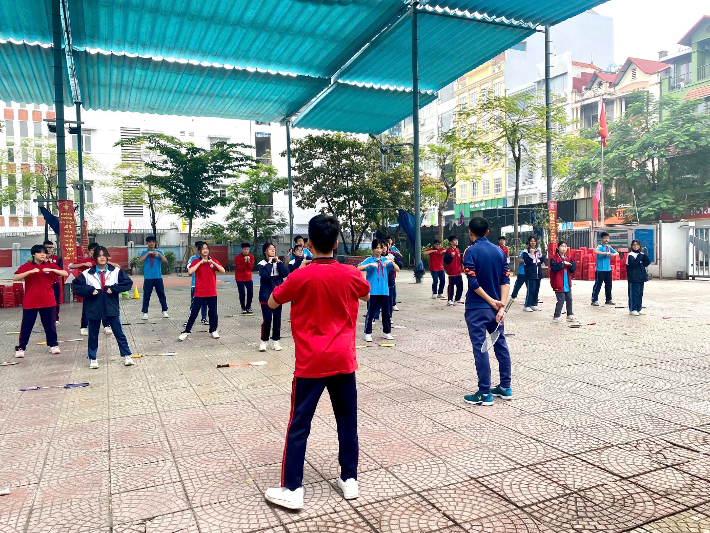 Ngay từ những phút đầu tiên của tiết học, thầy Tâm đã mang đến bầu không khí tươi mới bằng phần khởi động tràn đầy năng lượng. Từng động tác nhịp nhàng, khỏe khoắn lôi cuốn cả lớp vào tiết học một cách tự nhiên và hứng khởi. Nụ cười, tiếng hô và nhịp đếm vang đều trên sân như tiếp thêm tinh thần cho tất cả mọi người dự tiết học.