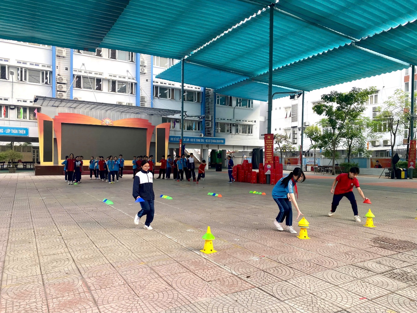 Các em học sinh lớp 9 thật sự tỏa sáng: nhanh nhẹn, mạnh mẽ, đầy quyết tâm. Có bạn tập trung hết sức để hoàn thiện kỹ thuật; có bạn hào hứng với phần thi đua nhóm; có bạn mồ hôi lấm tấm nhưng ánh mắt vẫn rực sáng sự tự tin. Sân trường hôm nay như một bức tranh sống động của tuổi trẻ – khỏe khoắn, nhiệt huyết, chan chứa niềm vui vận động.