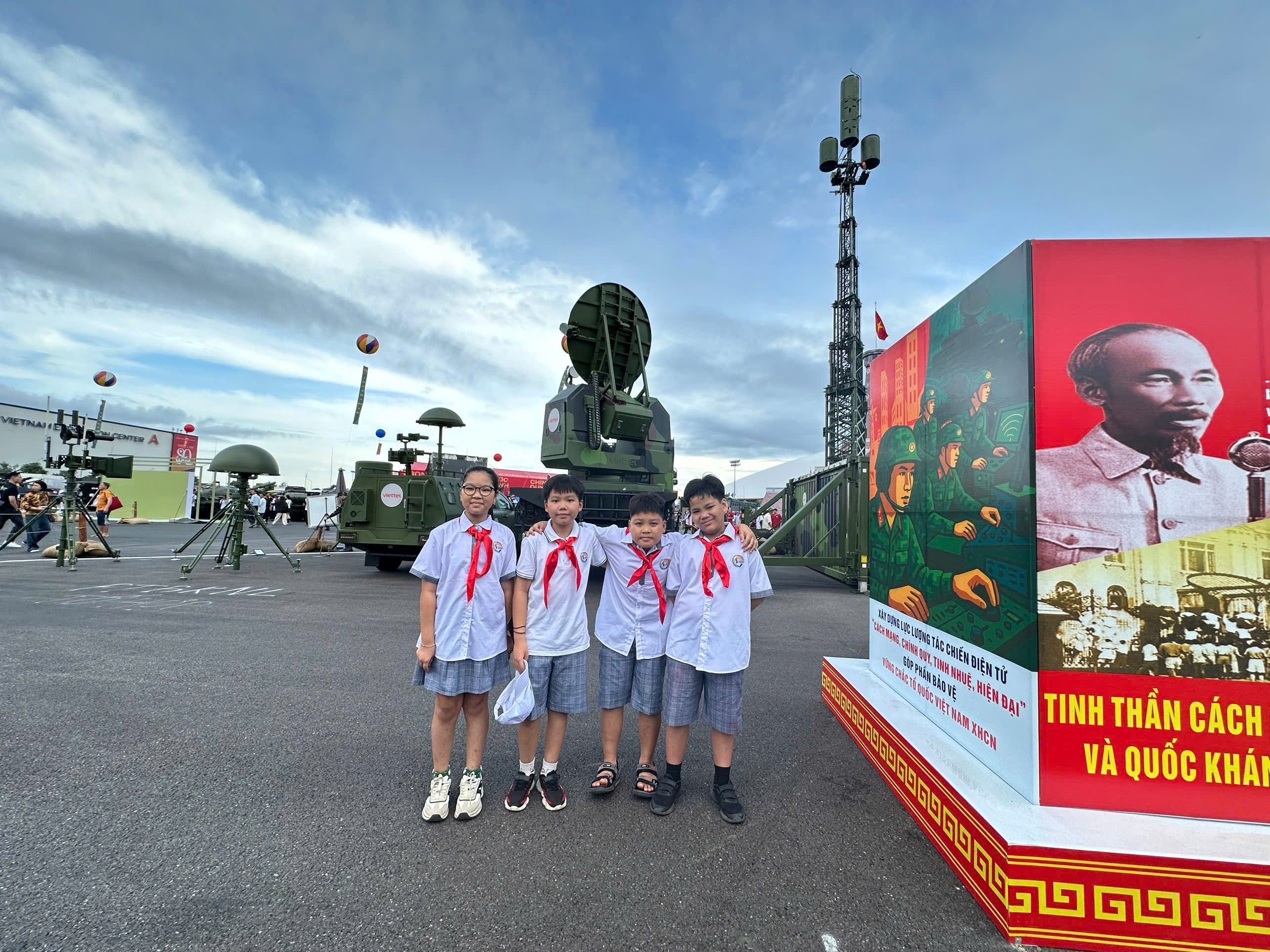 Ấn tượng đầu tiên của em là không gian triển lãm rộng lớn, hoành tráng và hiện đại. Em đã được xem bộ phim tư liệu “95 năm cờ Đảng soi đường” tại sảnh trung tâm, chụp ảnh với màn hình khổng lồ, trải nghiệm quay video – chụp hình bằng camera 360 độ, tham quan phòng trải nghiệm đa giác quan “Bản hùng ca Công an nhân dân” với âm thanh vòm sống động cùng màn hình bốn chiều bao quanh. Đặc biệt, em còn được tham quan khu trưng bày ngoài trời với nhiều loại khí tài, vũ khí hiện đại do Việt Nam chế tạo.