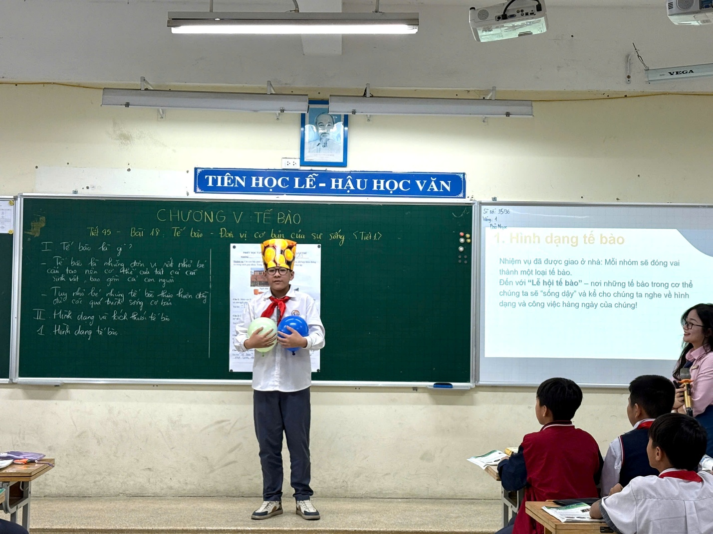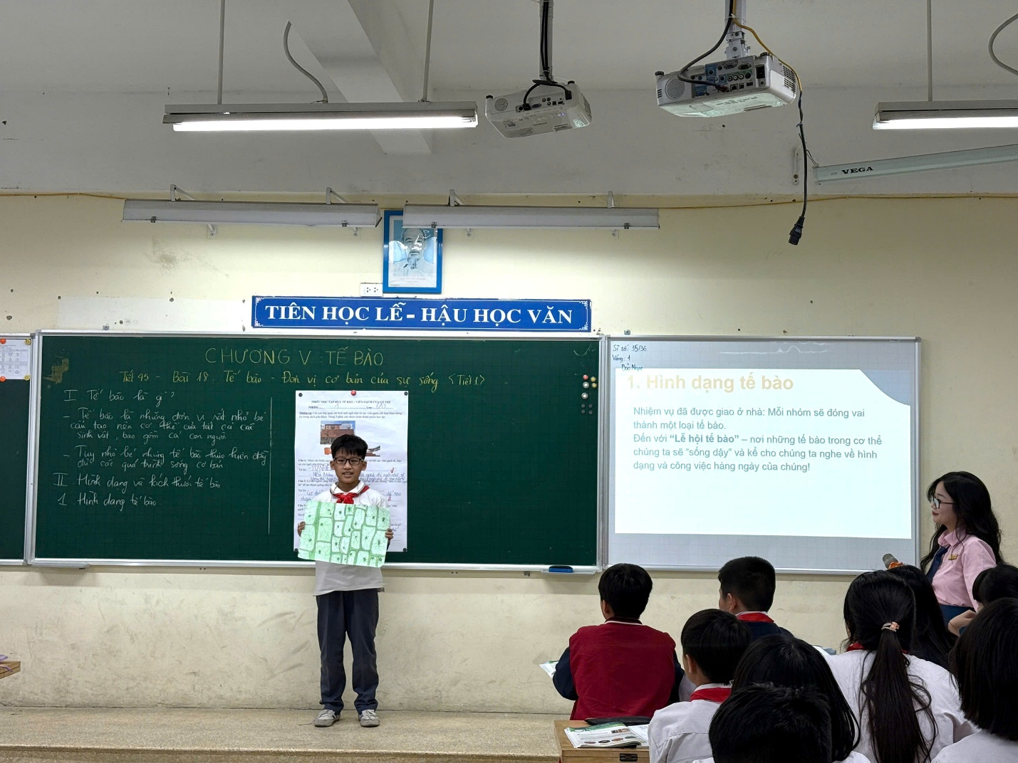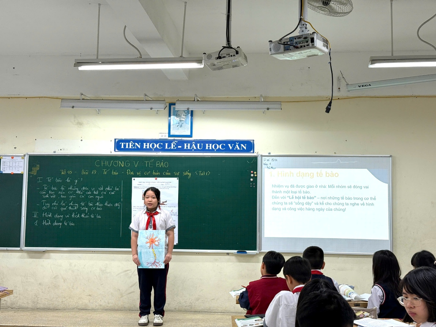 Với cách dẫn dắt sinh động, cô Thúy Vân giúp học sinh nhận ra rằng mọi vật sống – từ cây xoài, con ong đến chính cơ thể con người – đều được tạo nên từ những “viên gạch tí hon” mang tên tế bào. Sự giản dị trong ví dụ và cách tiếp cận gần gũi của cô đã khiến bài học trở nên nhẹ nhàng mà sâu sắc.