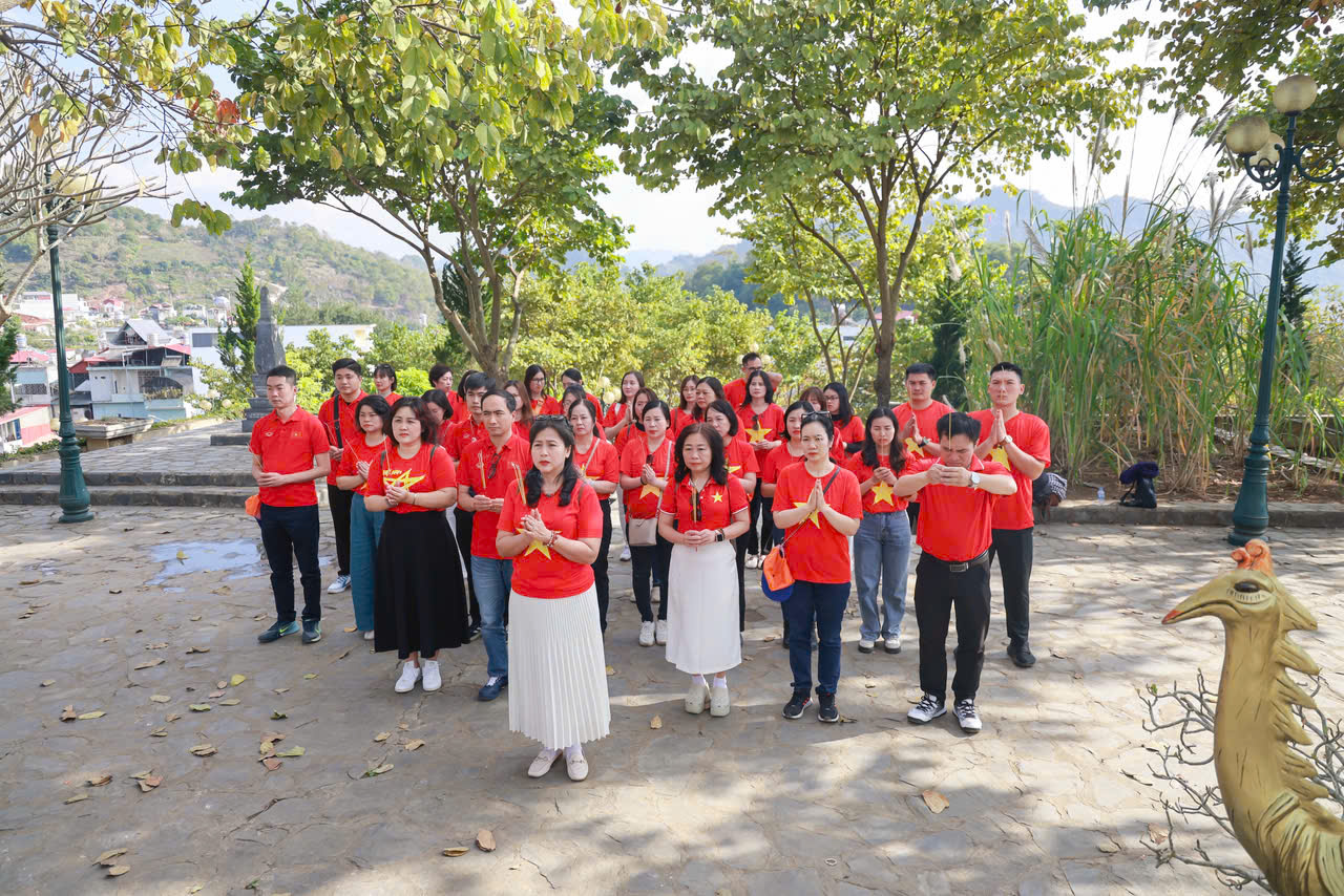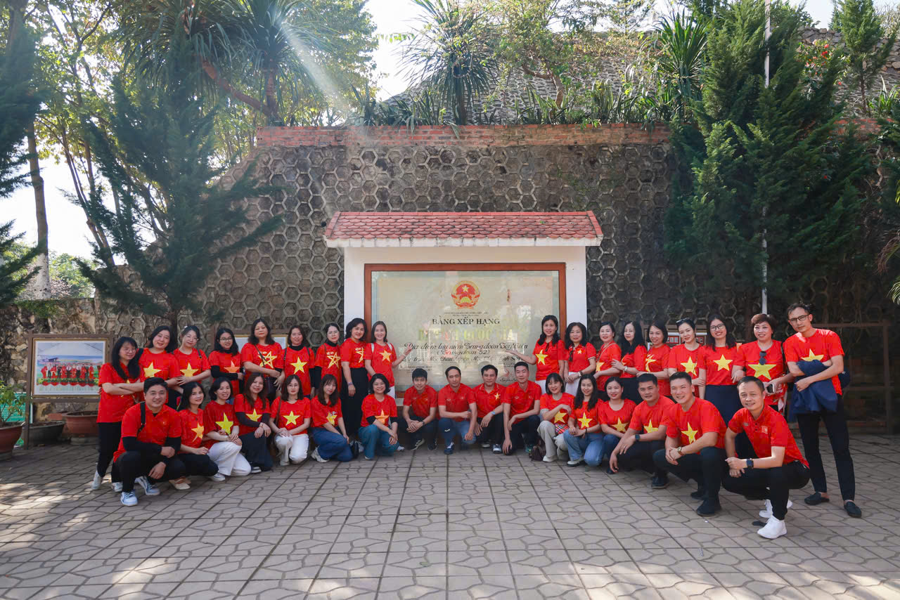 Tập thể chi bộ trường THCS Phan Chu Trinh chụp ảnh tại khu lưu niệm Trung đoàn Tây Tiến