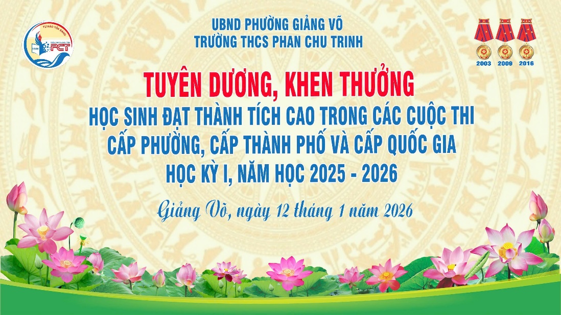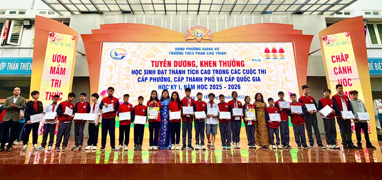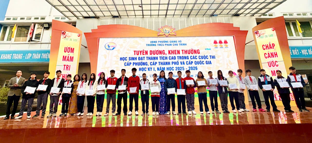 Sáng ngày 12/01/2026, trong giờ chào cờ đầu tuần, Trường THCS Phan Chu Trinh đã tổ chức buổi tuyên dương, khen thưởng các em học sinh đạt thành tích cao trong các cuộc thi cấp phường, cấp thành phố và cấp quốc gia trong học kì I, năm học 2025–2026.