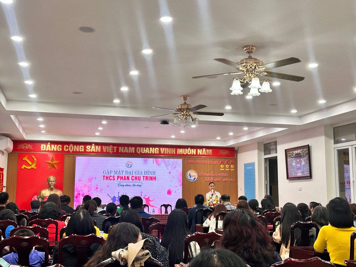 Sau những ngày Tết đầm ấm bên gia đình, không khí tại Trường THCS Phan Chu Trinh đã thực sự “nóng” trở lại với chương trình “Gặp mặt đại gia đình” diễn ra vào ngày 25/02. Hội trường rực rỡ cờ hoa, đông đủ cán bộ, giáo viên, nhân viên cùng người thân tham dự, tạo nên một không gian ấm áp, chan hòa và đầy ắp tiếng cười.