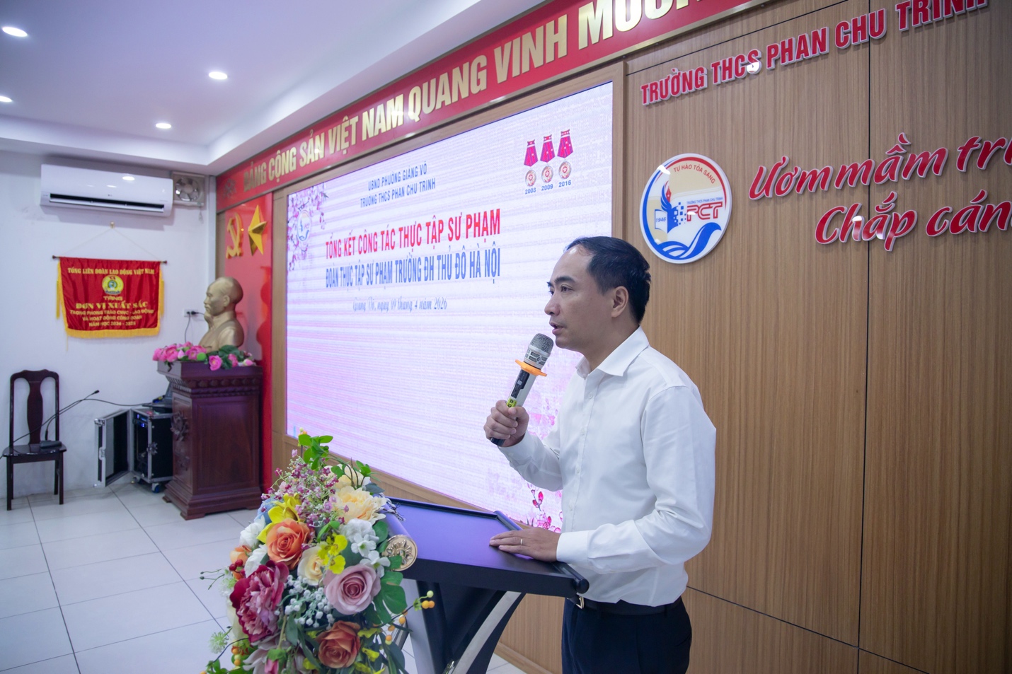 Đại diện Ban Giám hiệu, thầy Trần Thanh Việt phát biểu tổng kết và gửi lời động viên tới đoàn sinh viên thực tập sư phạm.