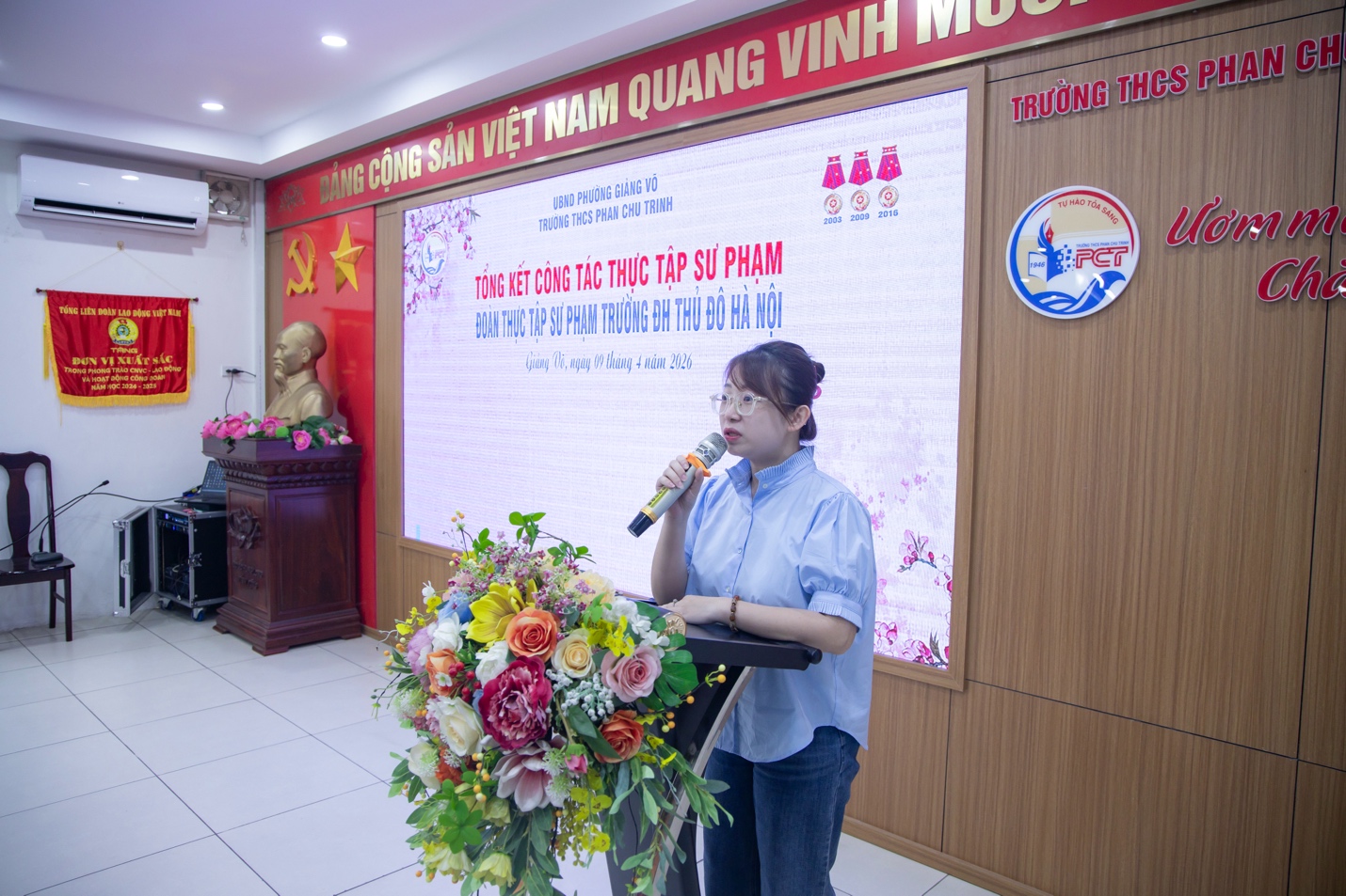 Đại diện phía đoàn thực tập, giảng viên Hà Thị Hải Thi bày tỏ sự trân trọng trước sự hỗ trợ tận tình của nhà trường và các thầy cô giáo. Thay mặt sinh viên, bạn Nguyễn Thị Phương Anh đã gửi lời cảm ơn chân thành tới Ban Giám hiệu, các thầy cô và học sinh đã giúp đỡ, tạo điều kiện để các bạn có một kỳ thực tập ý nghĩa.