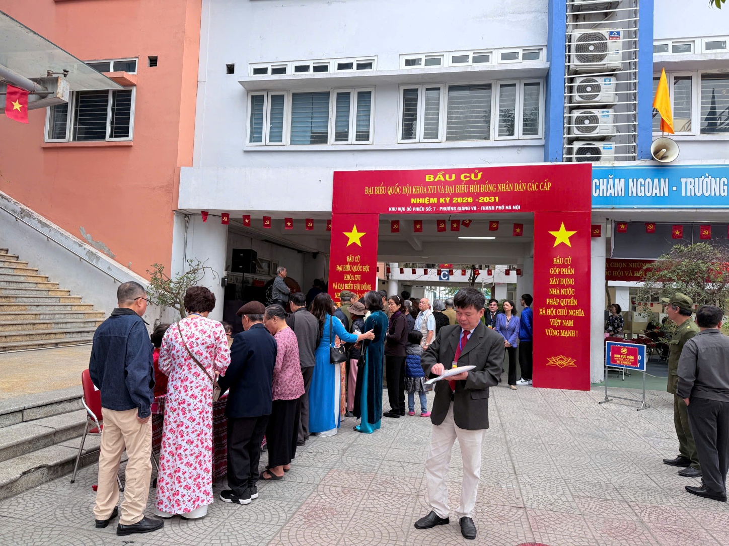 Ngày bầu cử tại Khu vực bỏ phiếu số 7 – trường THCS Phan Chu Trinh đã diễn ra trong không khí trang trọng, dân chủ và an toàn, với sự tham gia đông đủ, nghiêm túc của các cử tri trên địa bàn phường Giảng Võ.