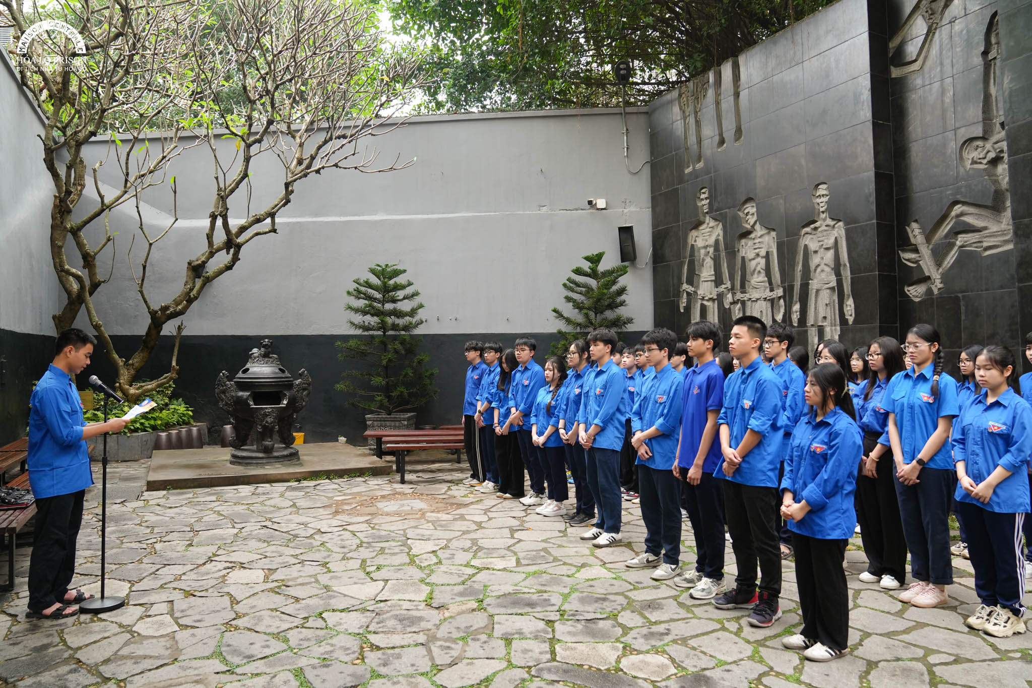 Đứng trước bức phù điêu ghi danh những người anh hùng, toàn thể đoàn viên mới đã dành một phút mặc niệm sâu sắc. Trong không gian tĩnh lặng, chúng em nghiêng mình tưởng niệm trước những hy sinh vô bờ bến của các anh hùng liệt sĩ. Mỗi tấc đất, mỗi viên gạch tại đây đều thấm đẫm máu và nước mắt của cha ông, những người đã đổi cả tuổi xuân và mạng sống để chúng em có được bầu trời hòa bình, tự do ngày hôm nay.