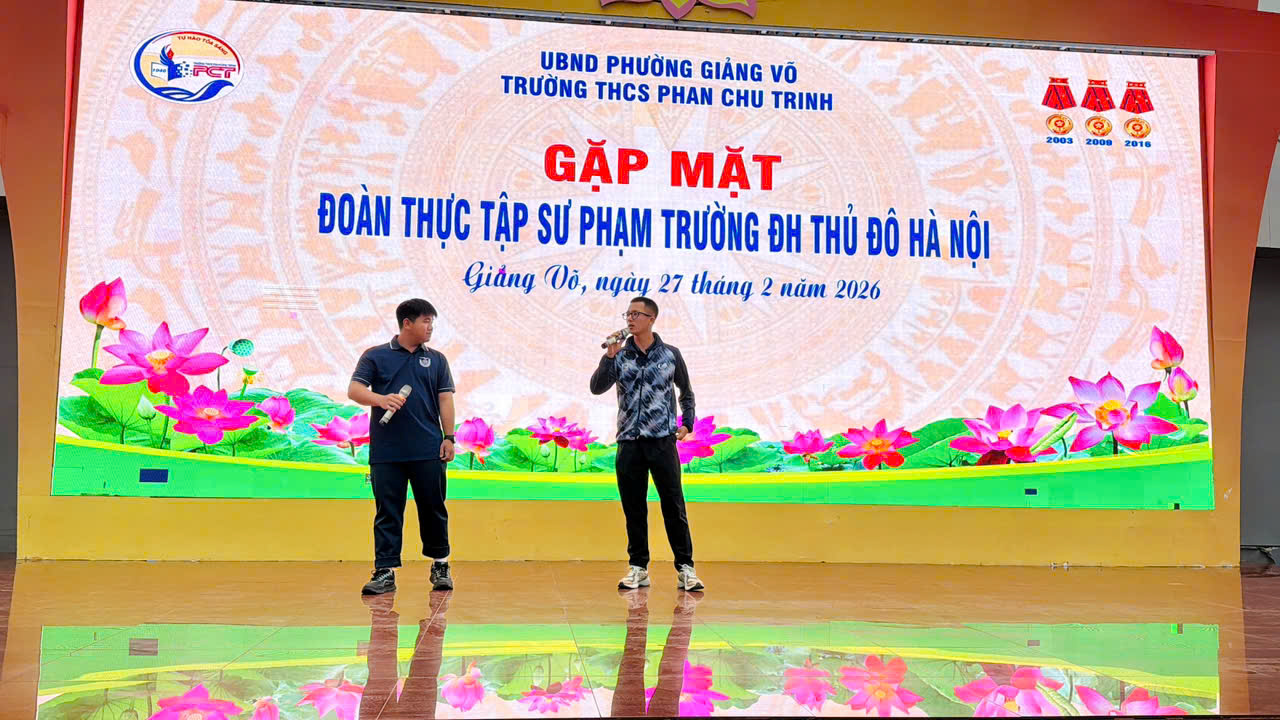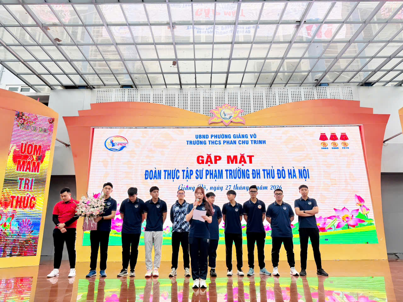Sáng ngày 02/3/2026, trong không khí trang trọng và ấm áp, thầy và trò Trường THCS Phan Chu Trinh đã chào đón đoàn sinh viên thực tập sư phạm đến từ Trường Đại học Thủ Đô Hà Nội- ngành Giáo dục Thể chất khóa D2023 về ra mắt và gặp mặt toàn trường.