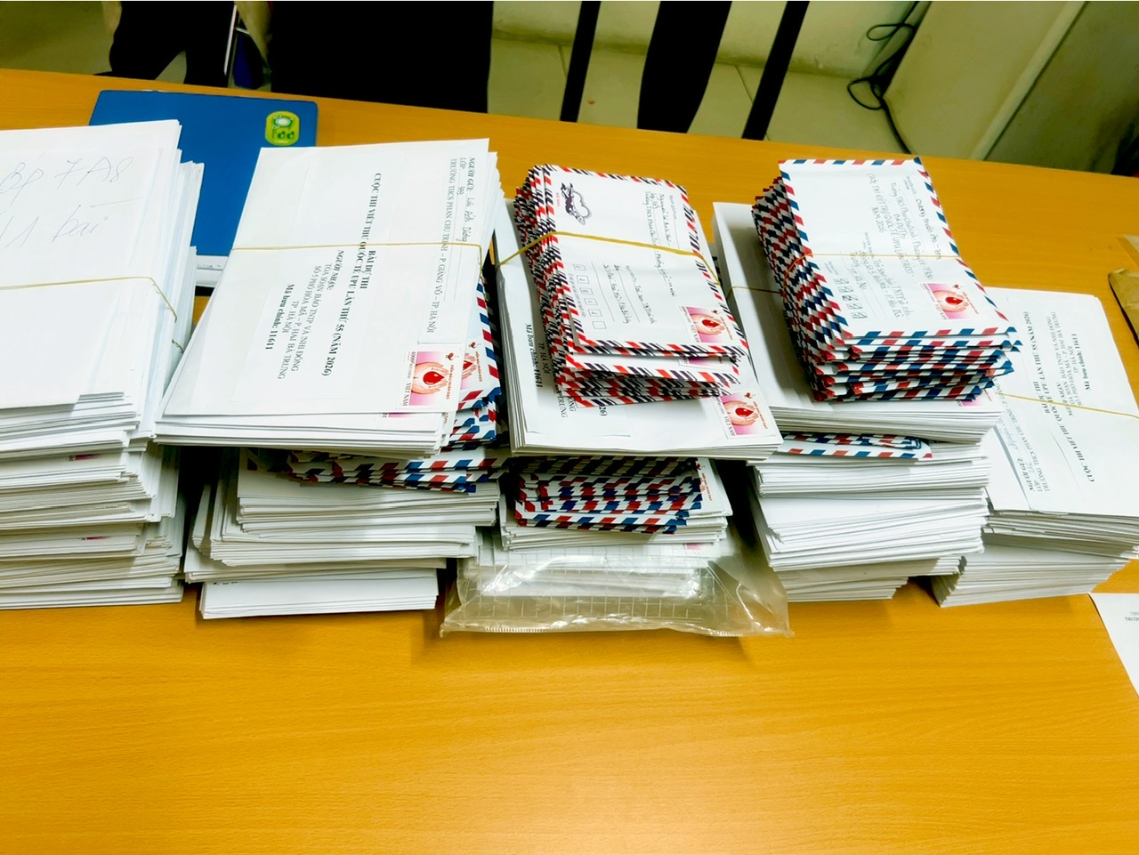 Hàng nghìn bài dự thi được xếp ngay ngắn chờ gửi đi
